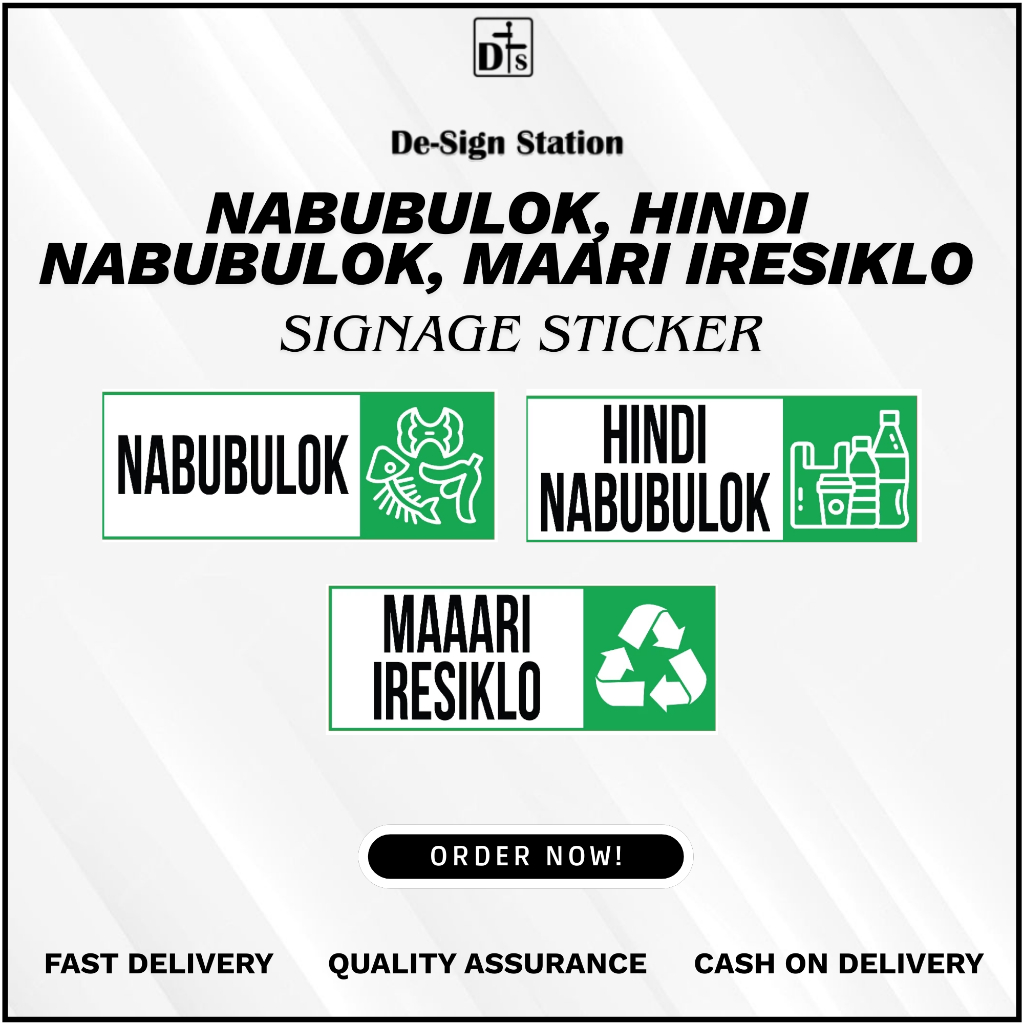 De-Sign Nabubulok/Hindi Nabubulok/Maaari Iresiklo Wall Sticker – 3x8 Inch Vinyl Signage