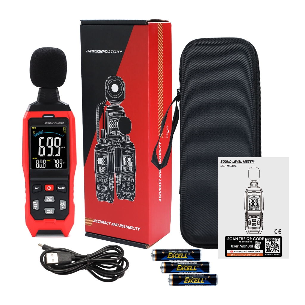 Decibel Meter with Data Logging function and A / C / Z Weighted Sound Meter Portable SPL Meter MAX/MIN/AVG, Data Hold Use for Home, Factory, Noisy Neighbor