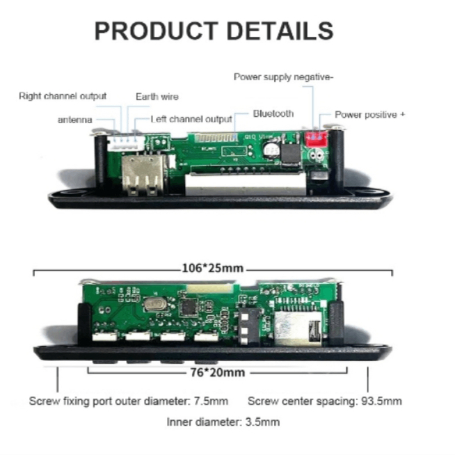 Decoder Board Module Wireless Bluetooth 5.0 5V-12V MP3 WMA USB TF Radio Car Audio(JQ-D908BT)