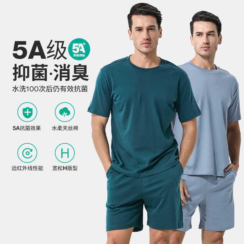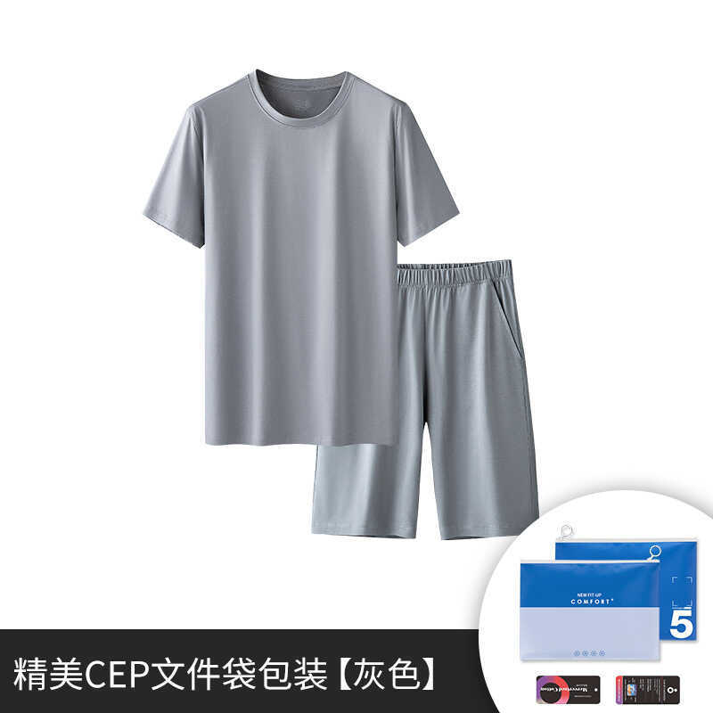 Tencel cotton men's pajamas, solid color short-sleeved shorts, suitable for outdoor wear, home casua