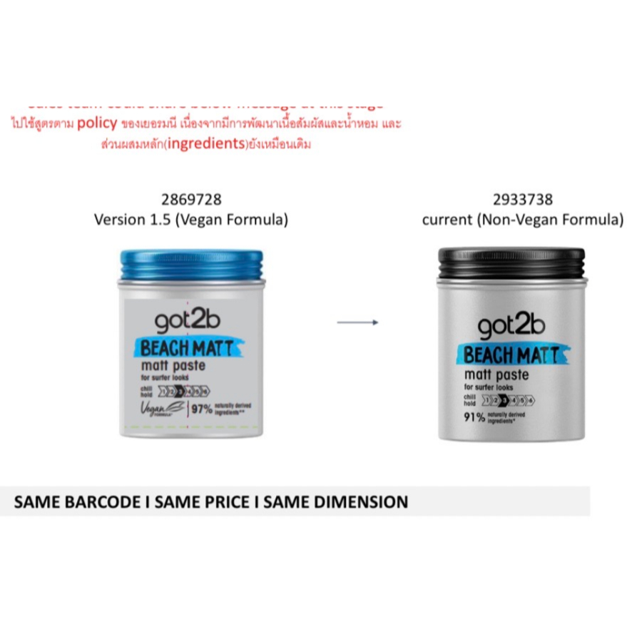 got2b got2b Beach Matte Paste 100 Ml. Hair Styling Wax Hair Wax