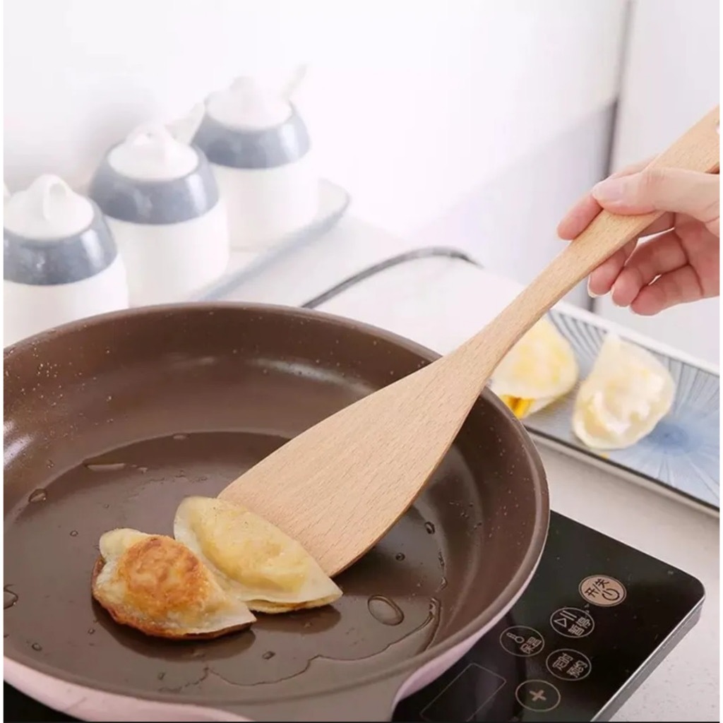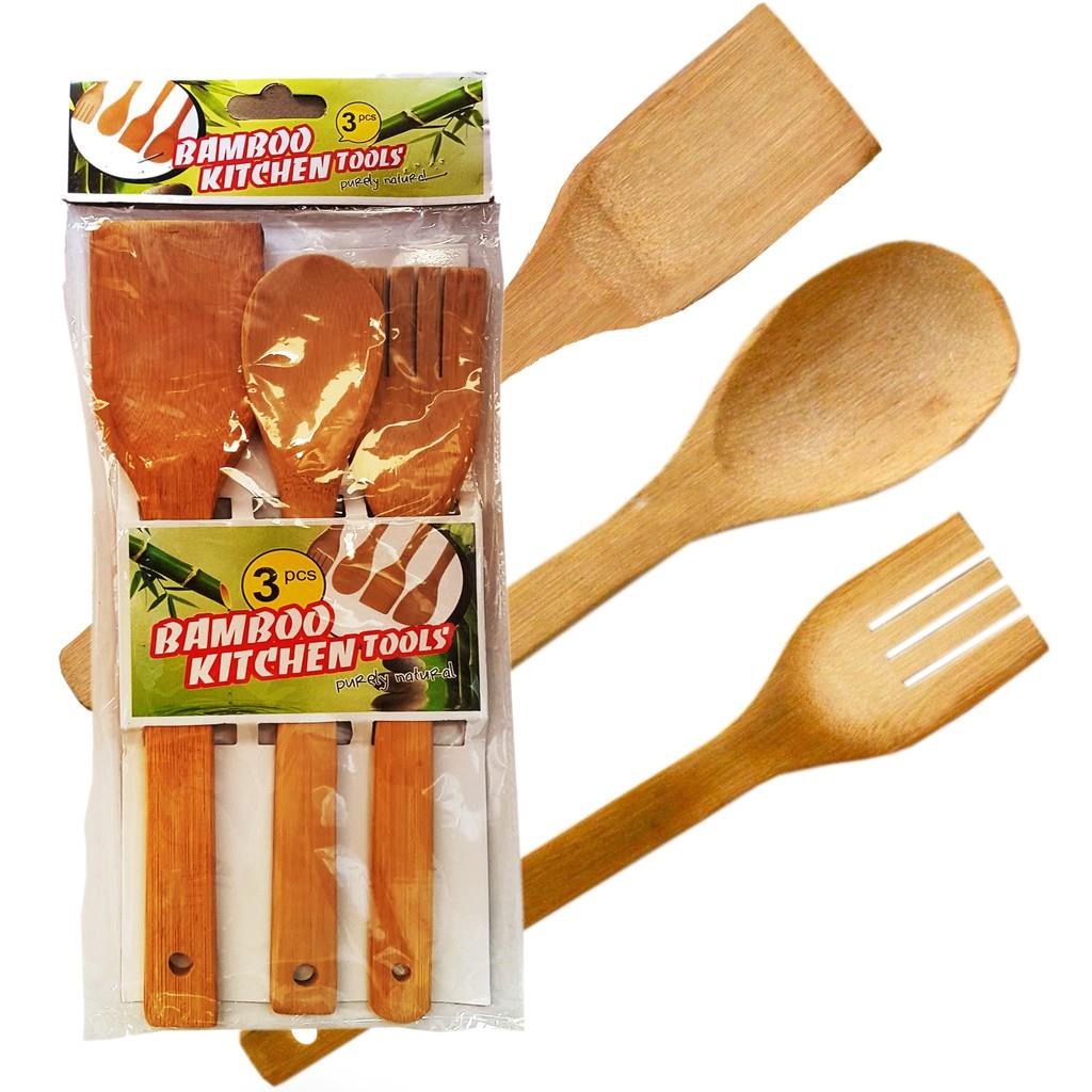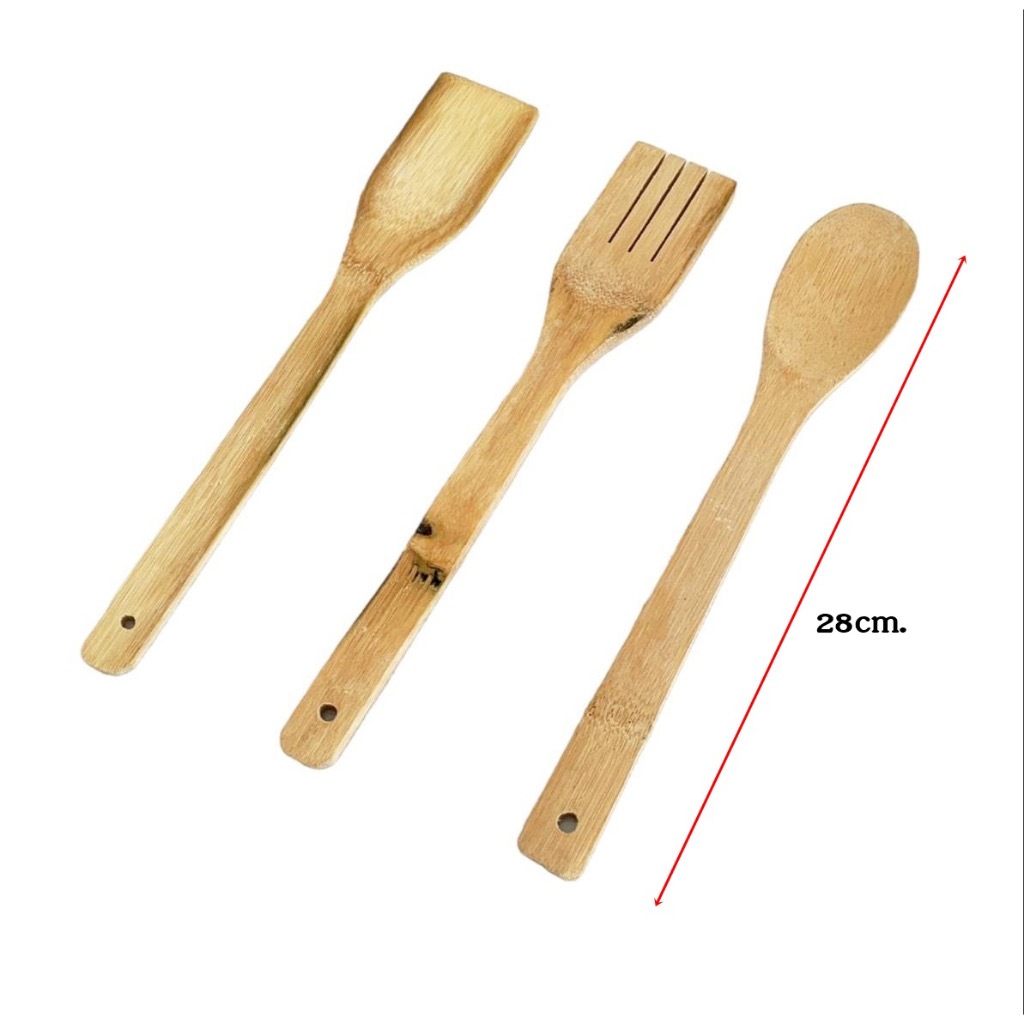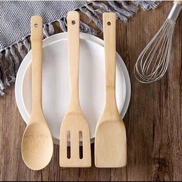 1pack/3pcs Long handle bamboo spatula kitchen frying spatula Heat resistant bamboo slotted spoon non
