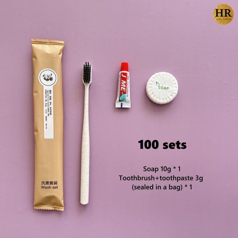 100sets Toothbrush+toothpaste (sealed in a bag) shampoo,soap HOTEL GUEST KIT SET