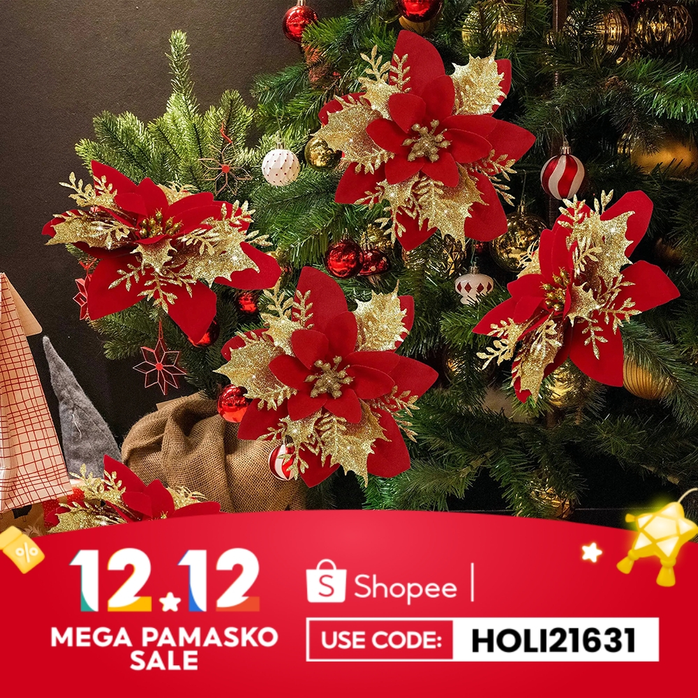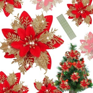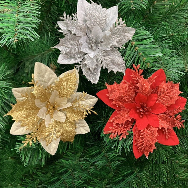 Decoration Xmas Ornaments Artifical Christmas Flowers With Stem for Christmas Tree