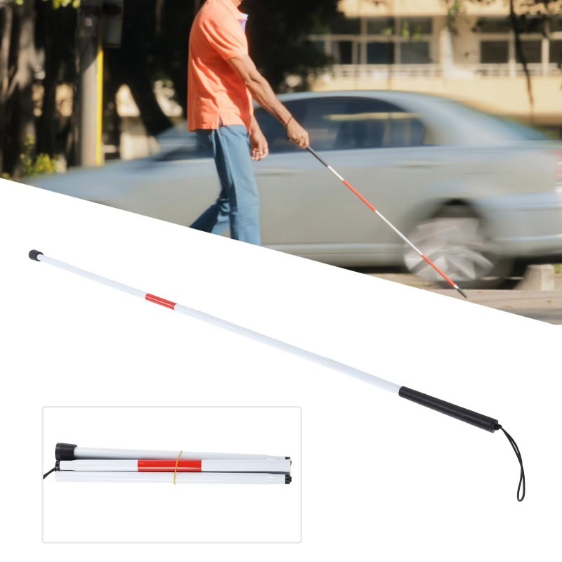 Folding Blind Rod Visually Impaired Crutch Cane 4 Section Portable Foldable Walking Stick Aluminium