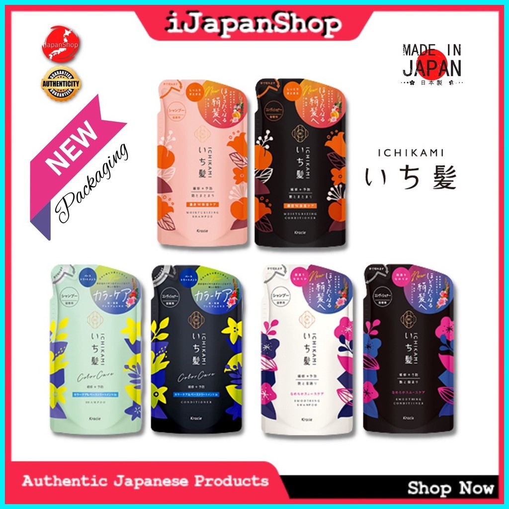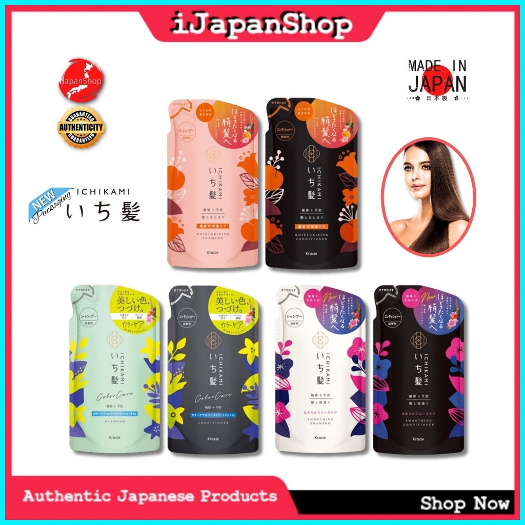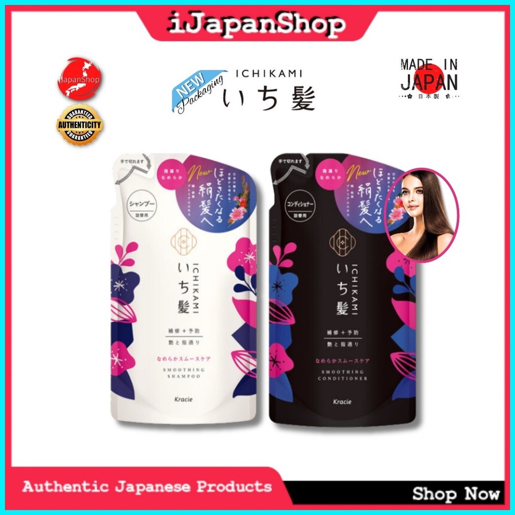 Kracie Ichikami Japanese Smoothing /Moisturizing Hair Shampoo /Conditioner 330ml Refill Sulfate Fre