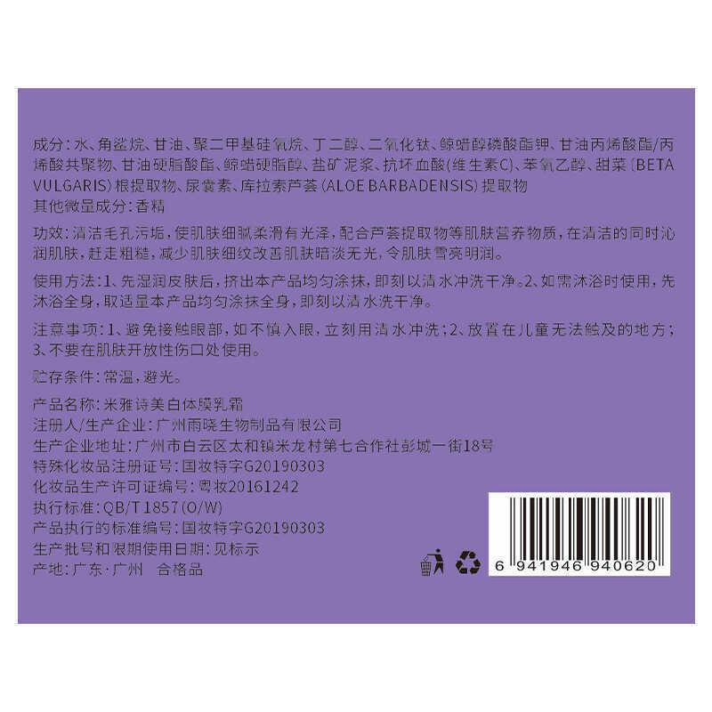 Whitening Body Mask Bottled Brightening Skin Tone Moisturizing Special Evidence Whitening Body Mask Body Face Cream