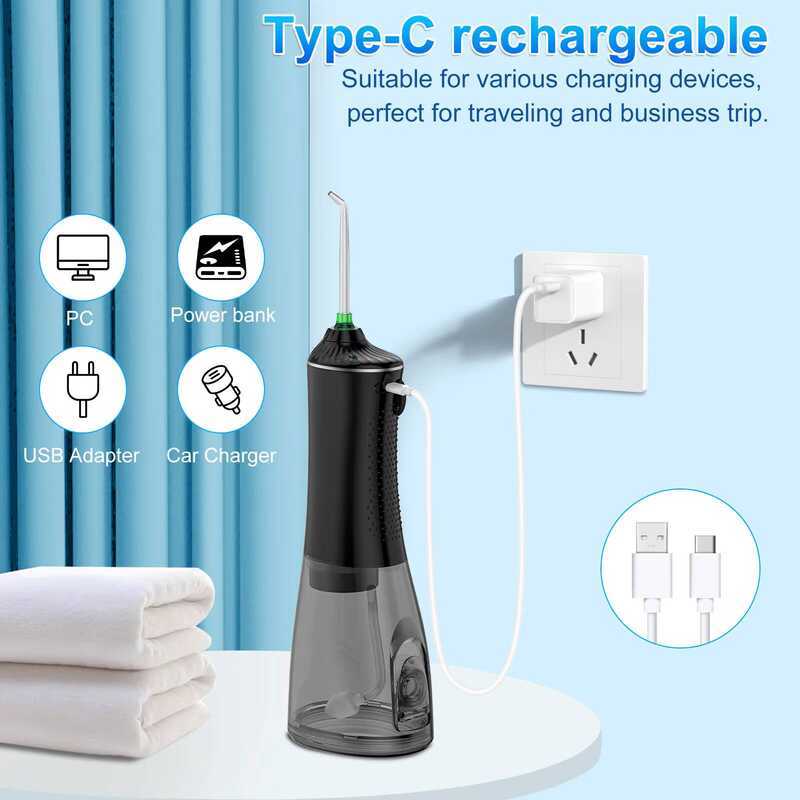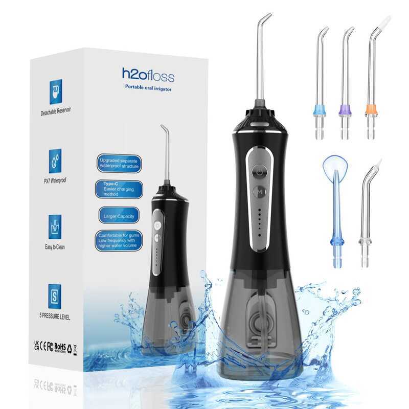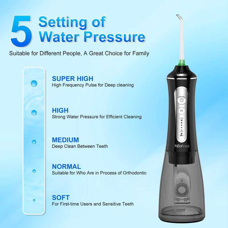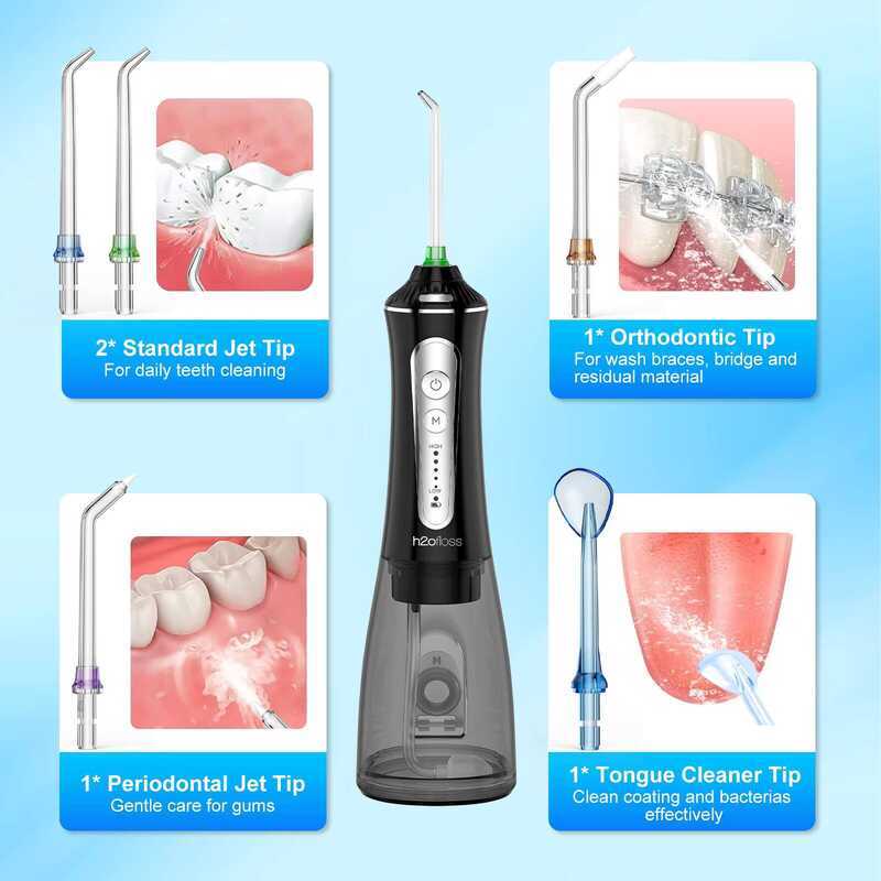 H2ofloss Professional Cordless Oral Irrigator Portable Electric Dental Flosser IPX7 Waterproof Water