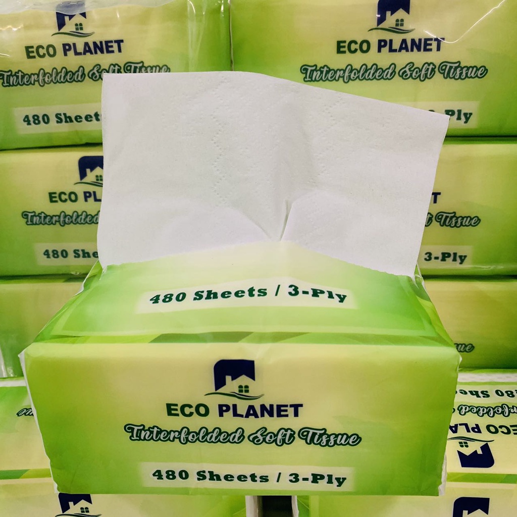4-Ply ECOPLANET 480Sheets 1Pack 8Pcs Disposable Inter-Folded Facial Tissue cleaning tissue paper COD