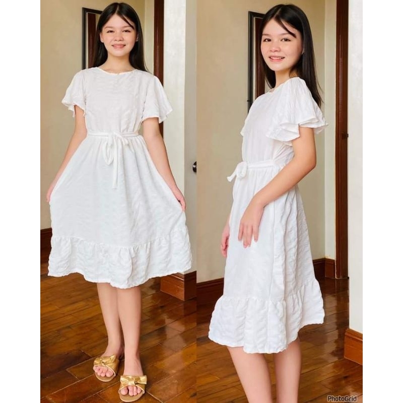 KIDS DRESS PUFF SLEEVES- OFF SHOULDER 9-12 (Freesize)