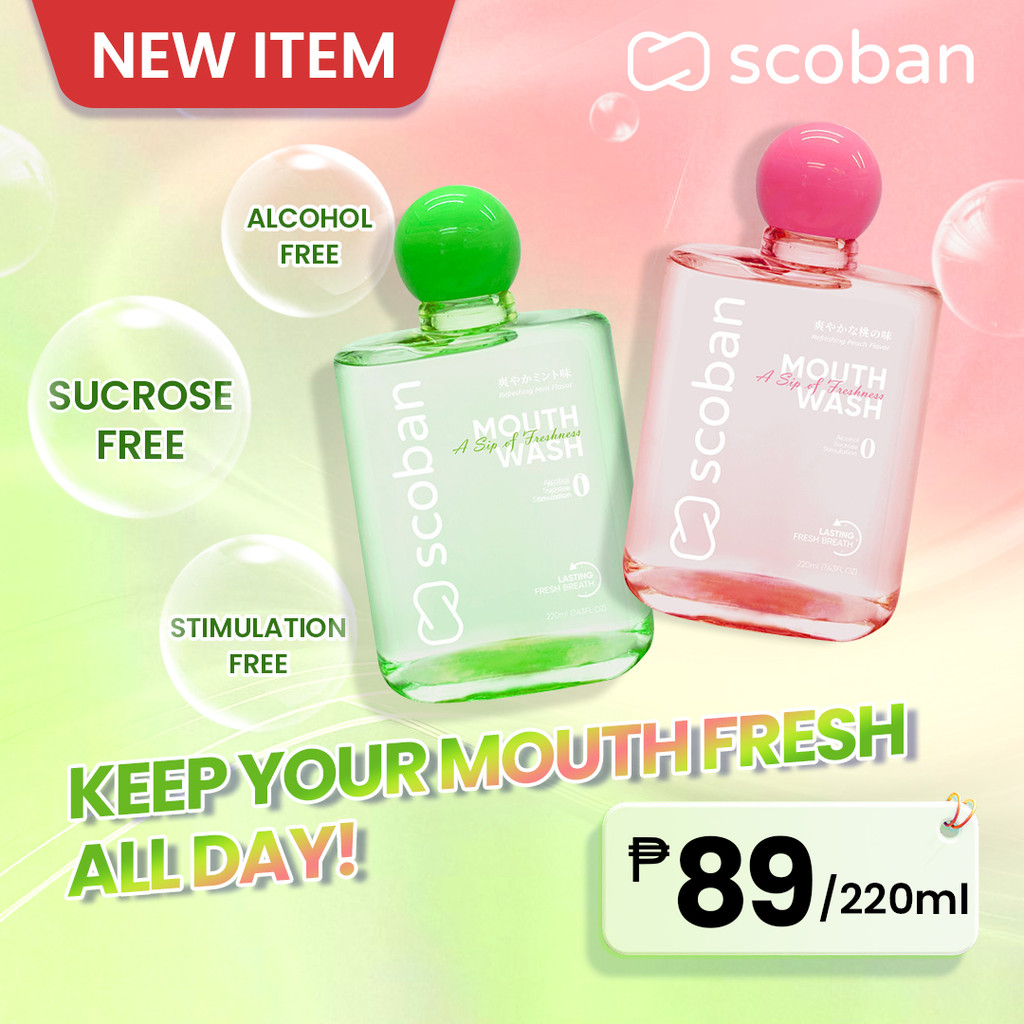 Scoban Fresh Mouthwash Mouth Perfume Mint Peach Flavor Alcohol Free Teeth Cleaning LongLasting Fresh