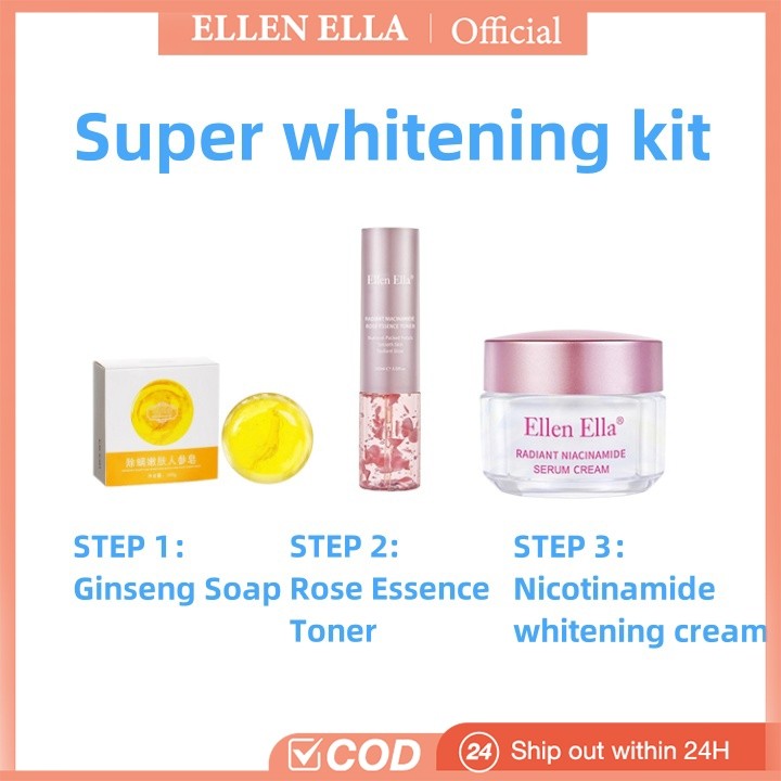 Ellen Ella Super Whitening Set ginseng whitening soap rose serum toner Nicotinamide whitening cream