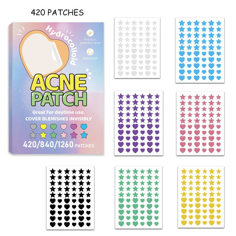 420/840pcs Cute Star Pimple Patches Multicolour Waterproof Hydrocolloid Acne Cover Pimple Stickers