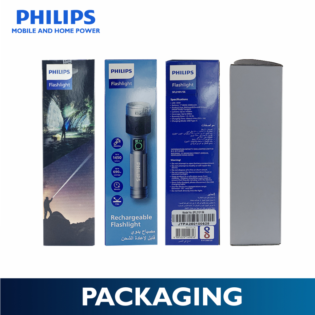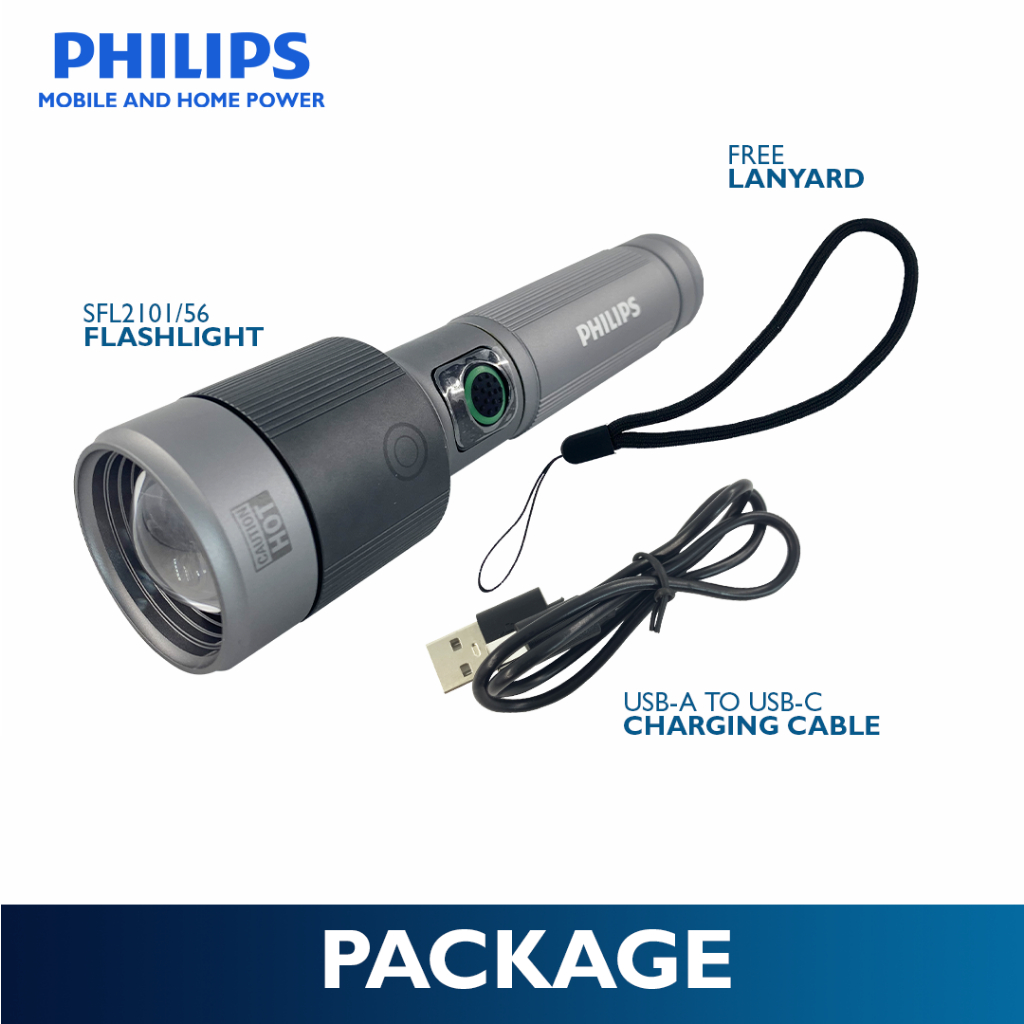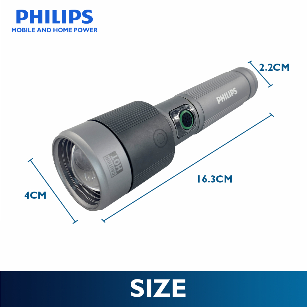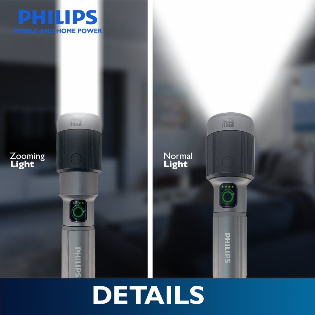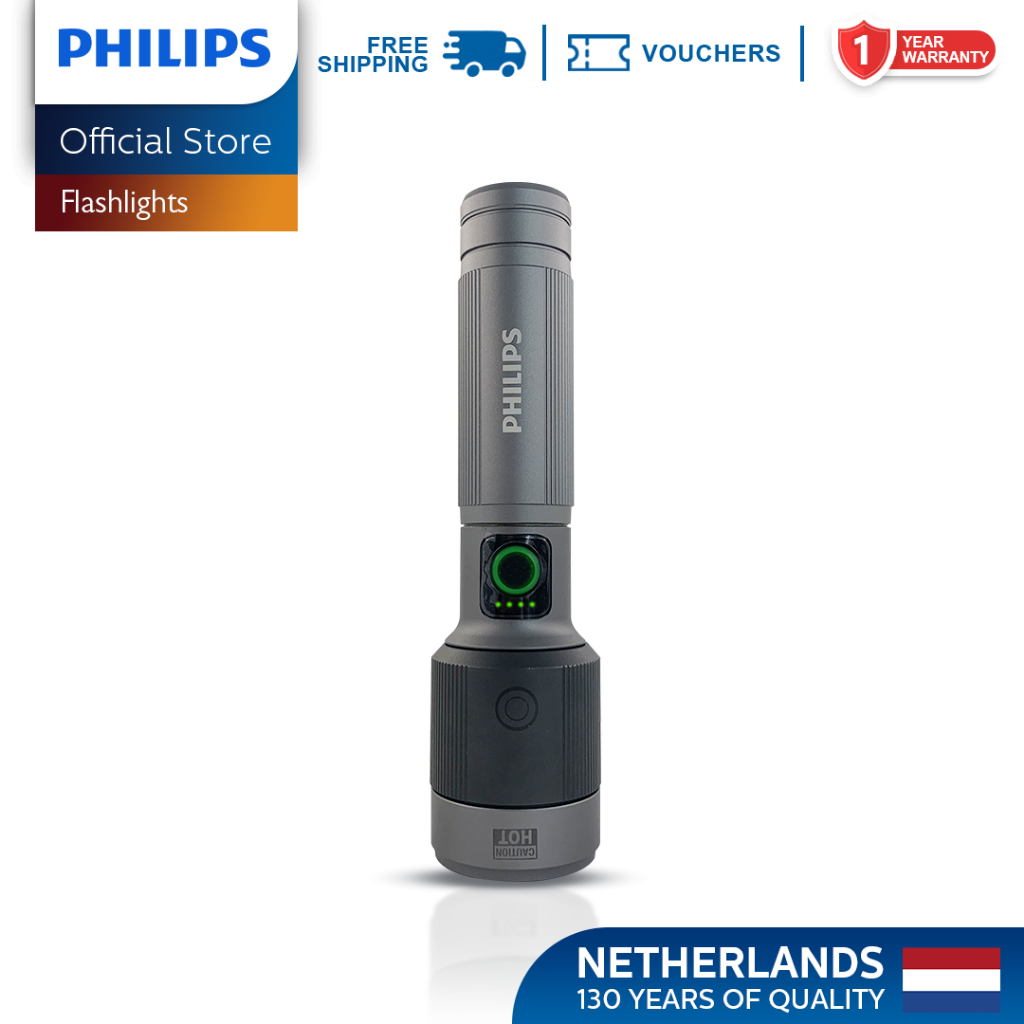 Philips 30W Zooming Flashlight Light 162mm Handheld Rechargeable Flashlight Up to 1450lm