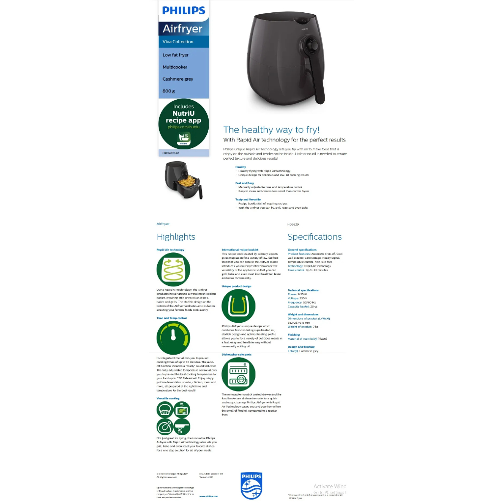 PHI LIPS Viva Collection Air Fryer HD9229 2.2L (Black)