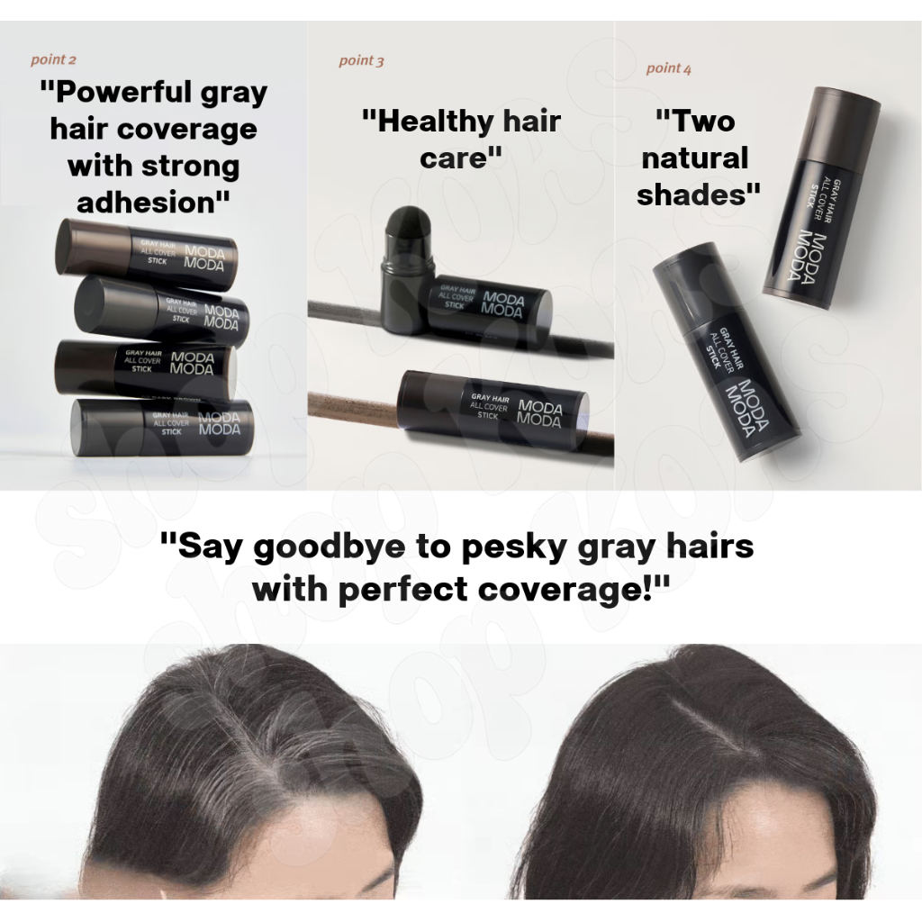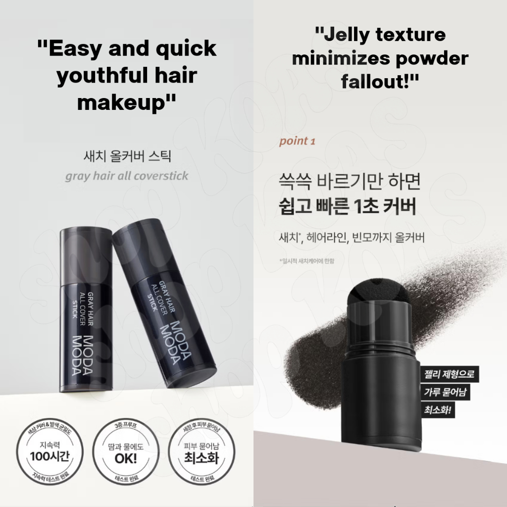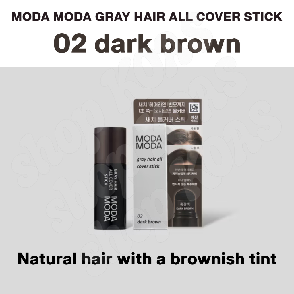 [modamoda] gray hair all cover stick, waterproof 30h lasting, black/dark brown 2.5g