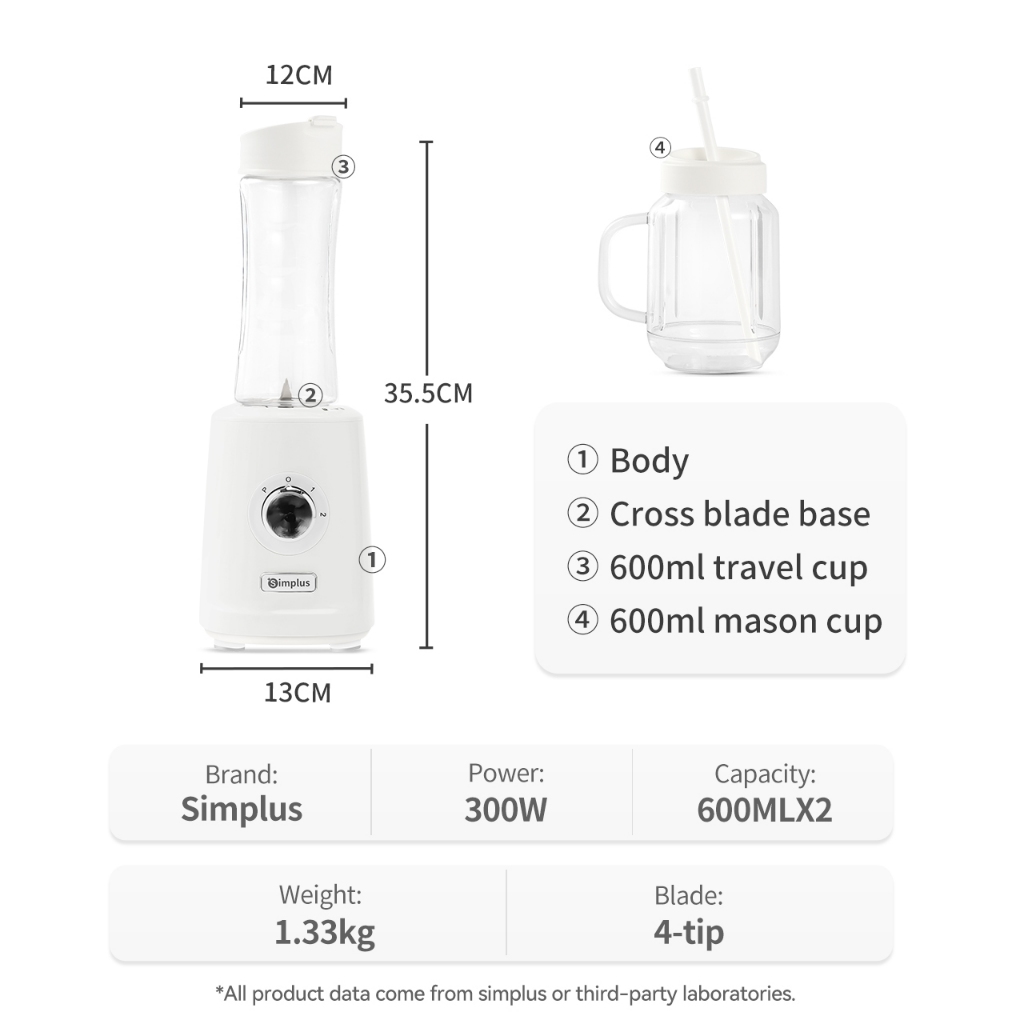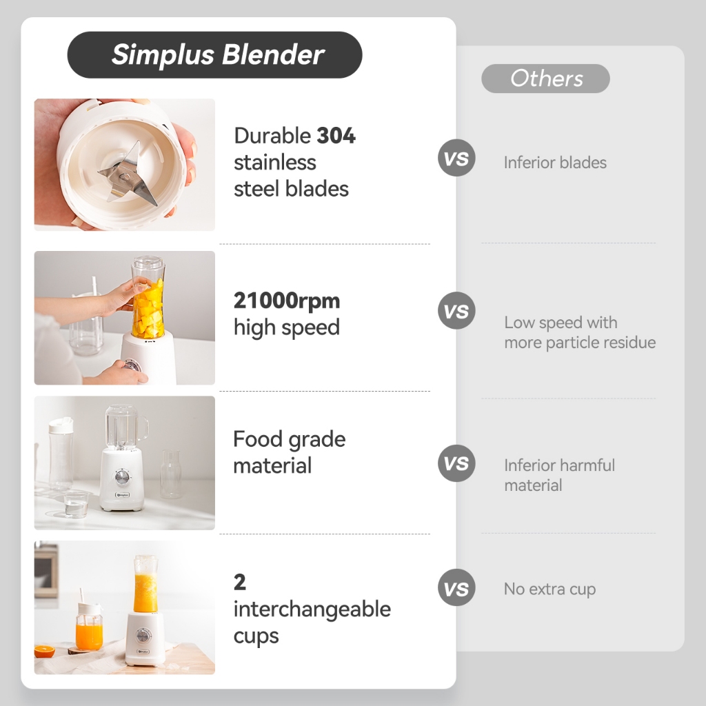 Simplus Blender Multi-functional Food Processor 3 Adjustable Modes 2 Interchangeable Cups