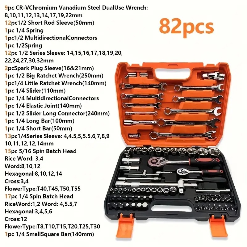 82pcs Tool Socket Wrench Tools Set Car Repair Ratchet Set for Mocycles Heavy Duty Tool Box Original