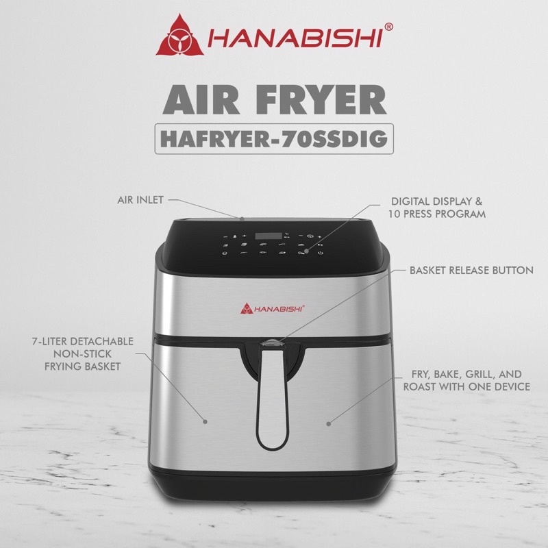 Hanabishi Non-stick Digital Air Fryer 7 Liter HAFRYER70SSDIG with Freebie