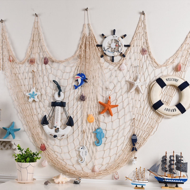 Decorative Fishing Net Ocean Theme Home Wall Hangings Decor Stickers Sea Shell Starfish Fishing Net