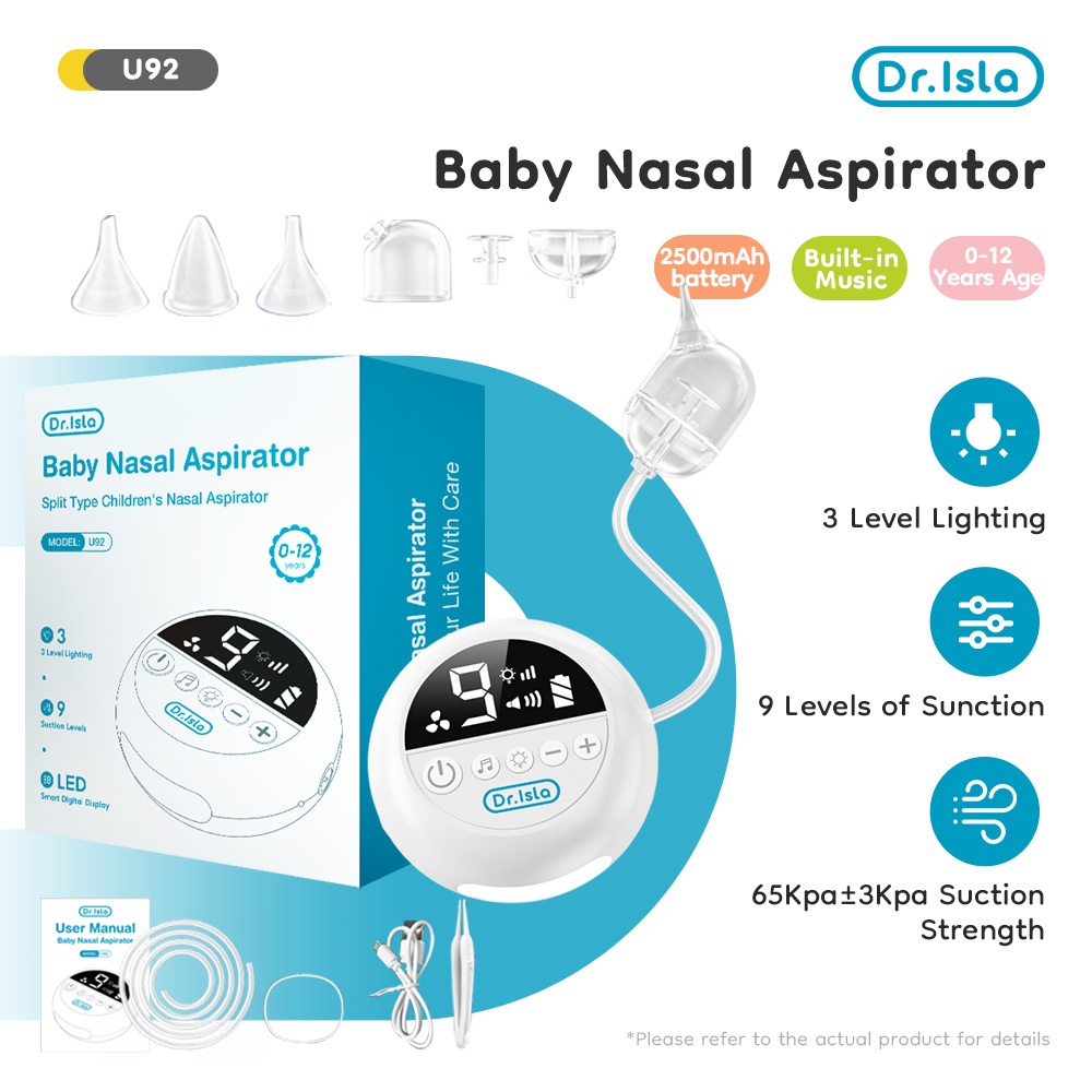 Dr.isla Automatic Nasal Aspirator for Baby 68Kpa 9 Gears Rechargeable With Night Light And Music U92