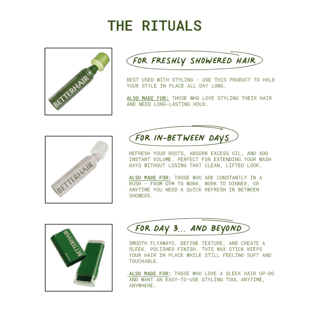 BETTERHAIR Starter Kit - Hairspray 80ml, Dry Shampoo 80ml, Hair Wax 8g