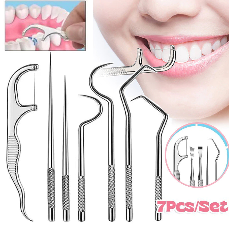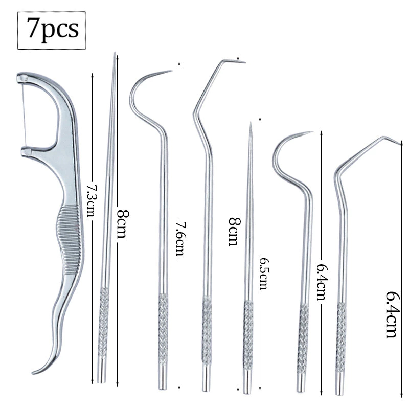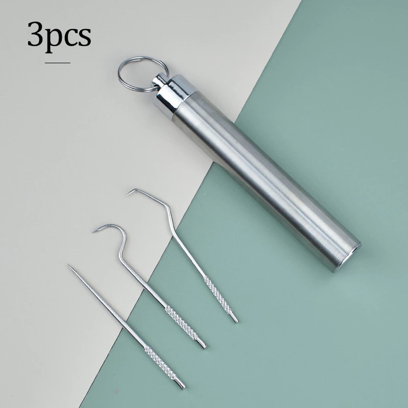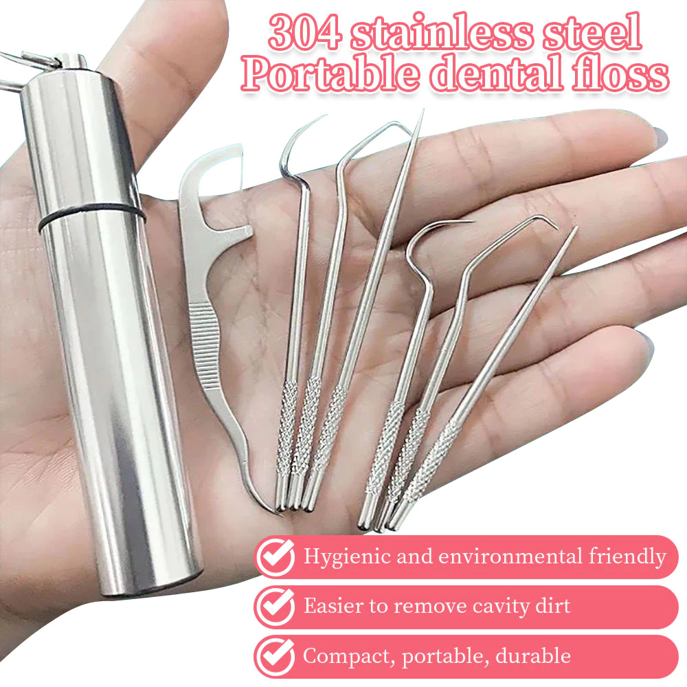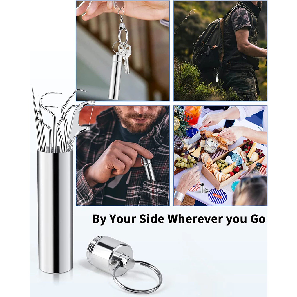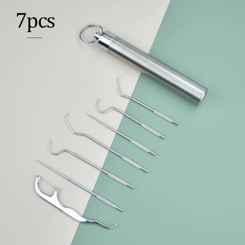 7Pcs/3Pcs Set Stainless Steel Toothpick Set Portable Storage Tube Metal Flosser Oral Teeth Cleaning