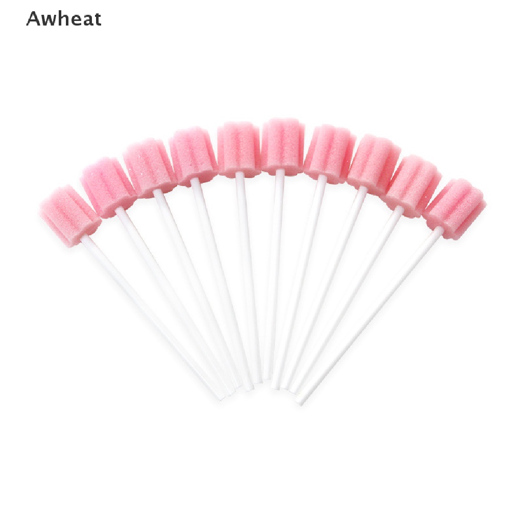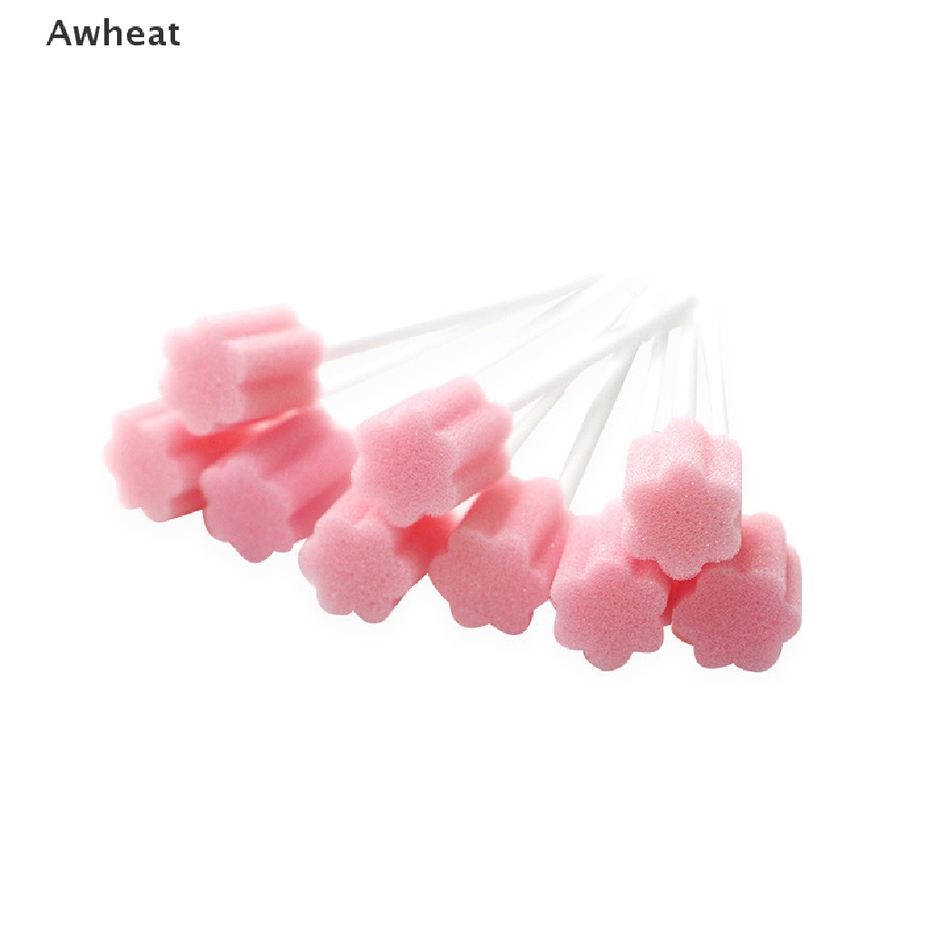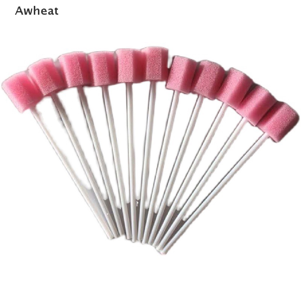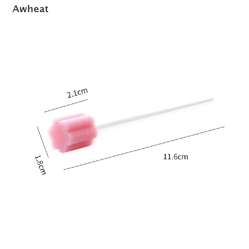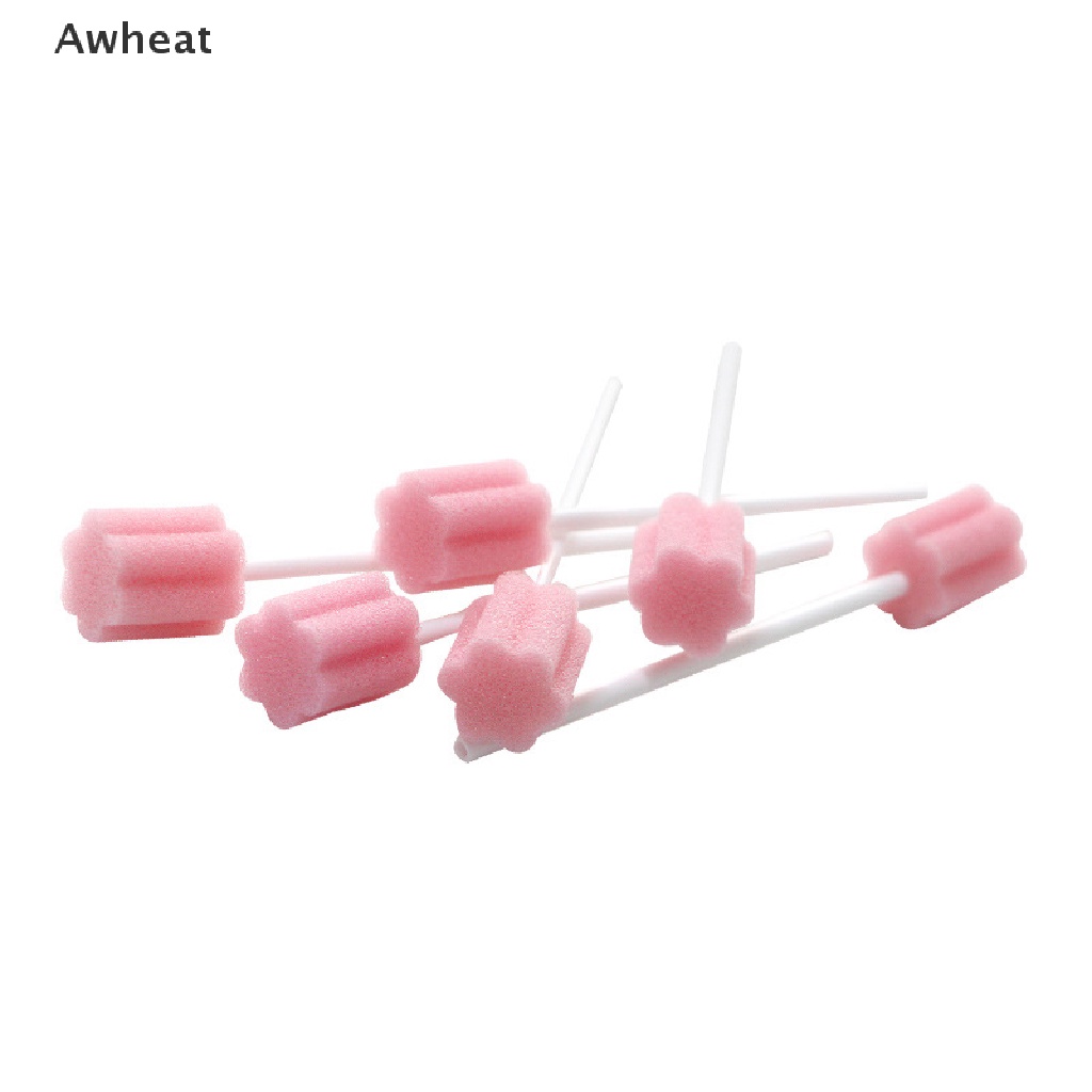 [Awheat] 100pcs Disposable Oral Care Sponge Tooth Cleaning Mouth Swabs With Stick *Hot Sale