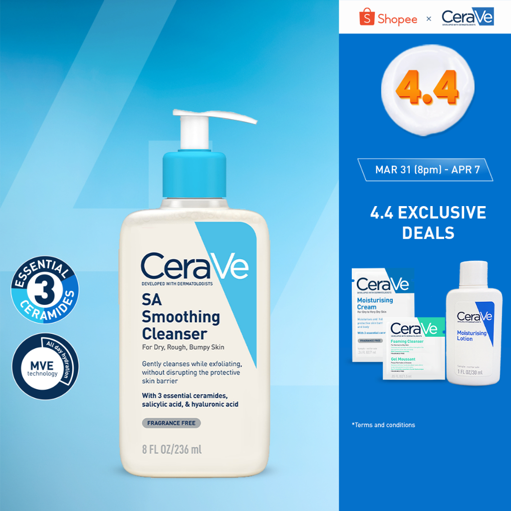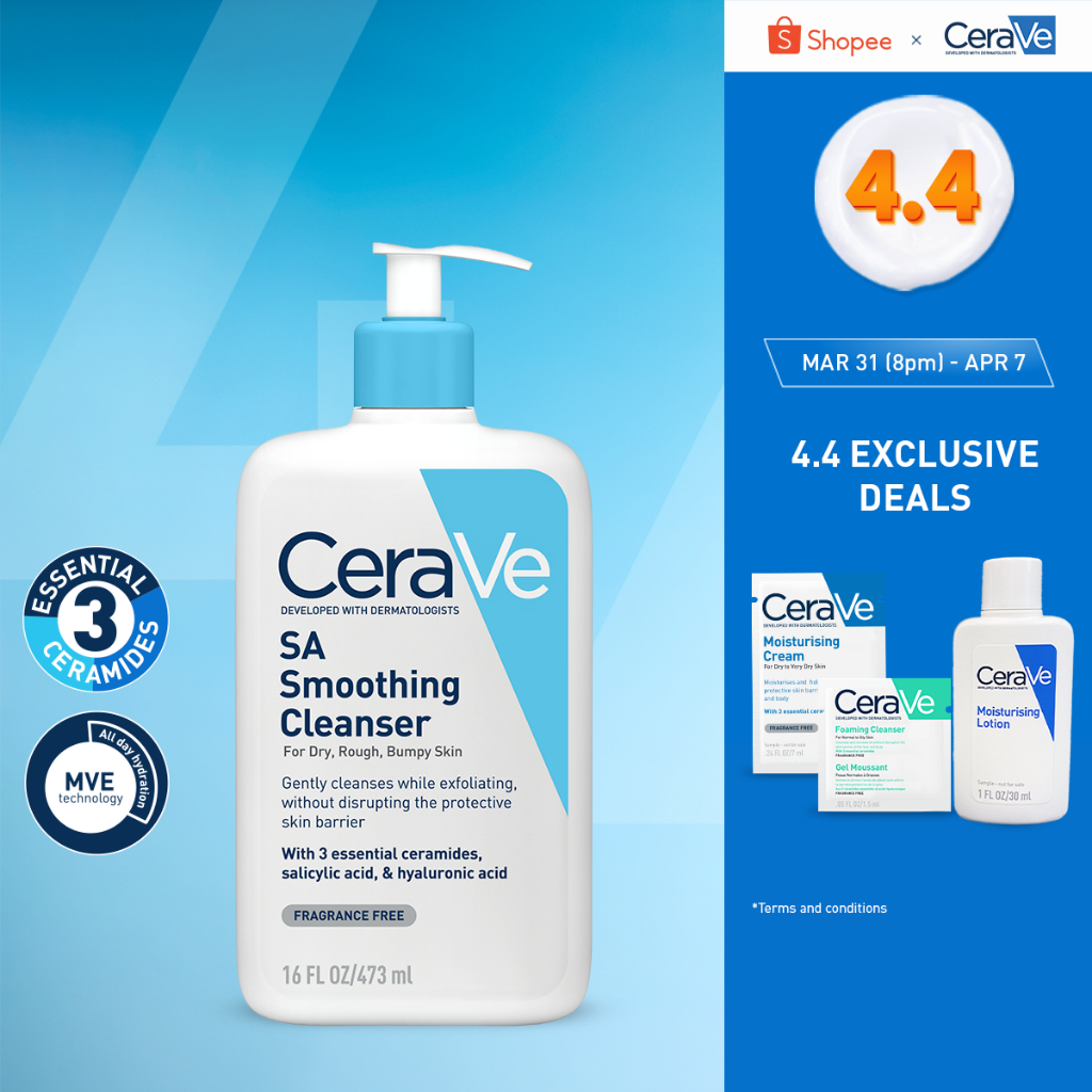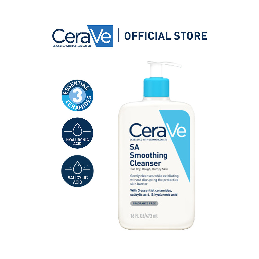 CeraVe SA Smoothing Cleanser with Salicylic Acid (88ml/236ml/473ml) | Gentle, Face Wash for Dry Skin