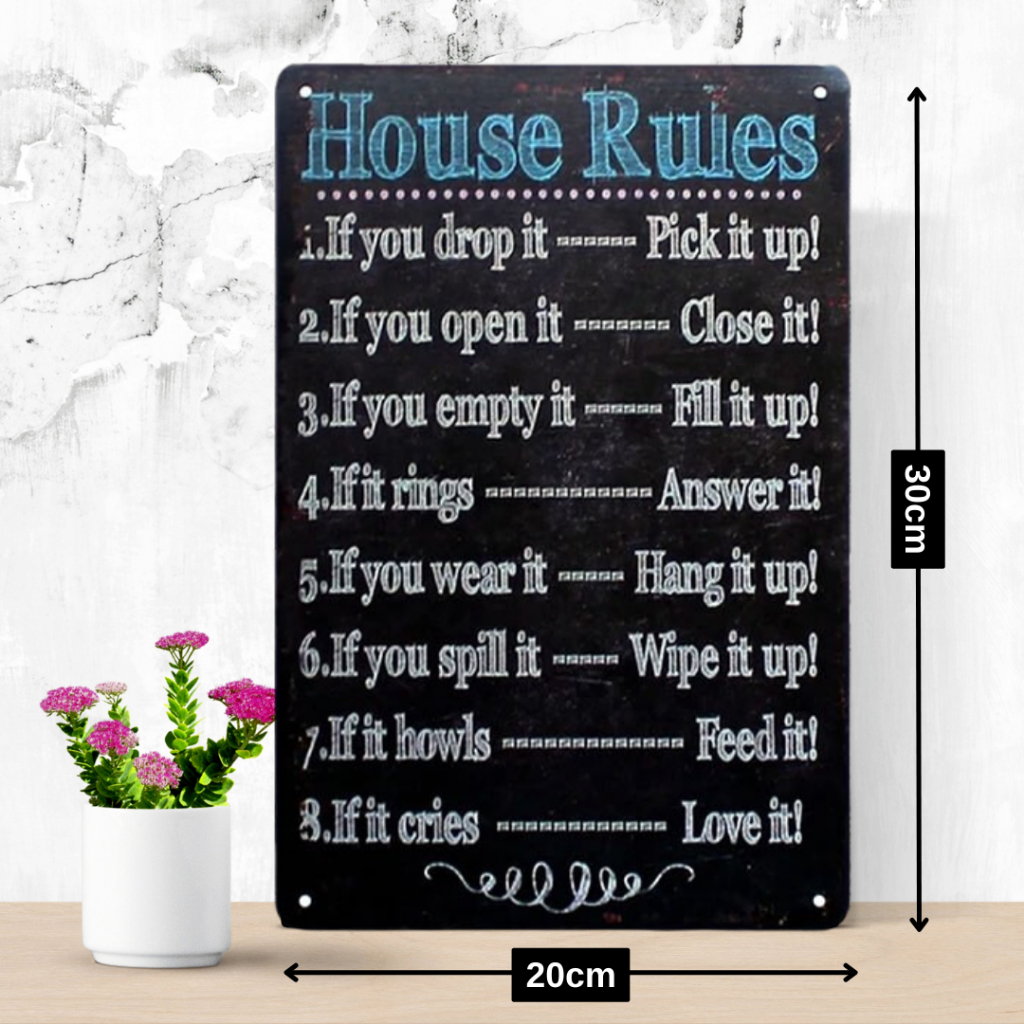 Decors and Beyond House Rules Garage Metal Tin Sign Vintage Rustic Wall Plaque Decor (30x20cm)