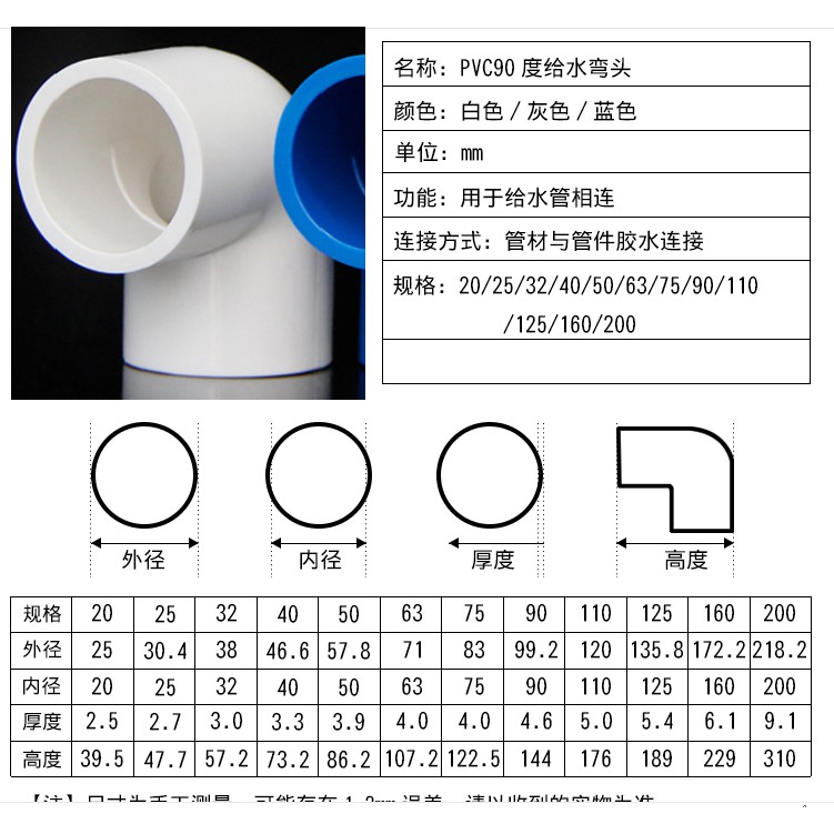 Deega PVC Elbow Water Pipe Fittings Water Supply Pipe 90 Degree Upper Lower Water Right Angle Elbow Joint Fish Tank Pipe Fittings Aquarium Upper Lower Water Joint Pipe Fittings 20 25 32 40 50 4