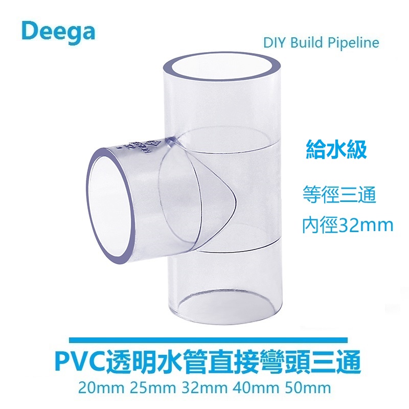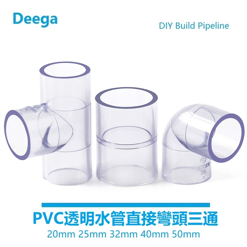 Deega UPVC Transparent Water Pipe Tee Joint Elbow Plastic Directly Directly PVC Water Supply Pipe Fish Tank Fittings Hardware Pipe Fittings 4 Points 20mm 25 32 Water Supply Grade