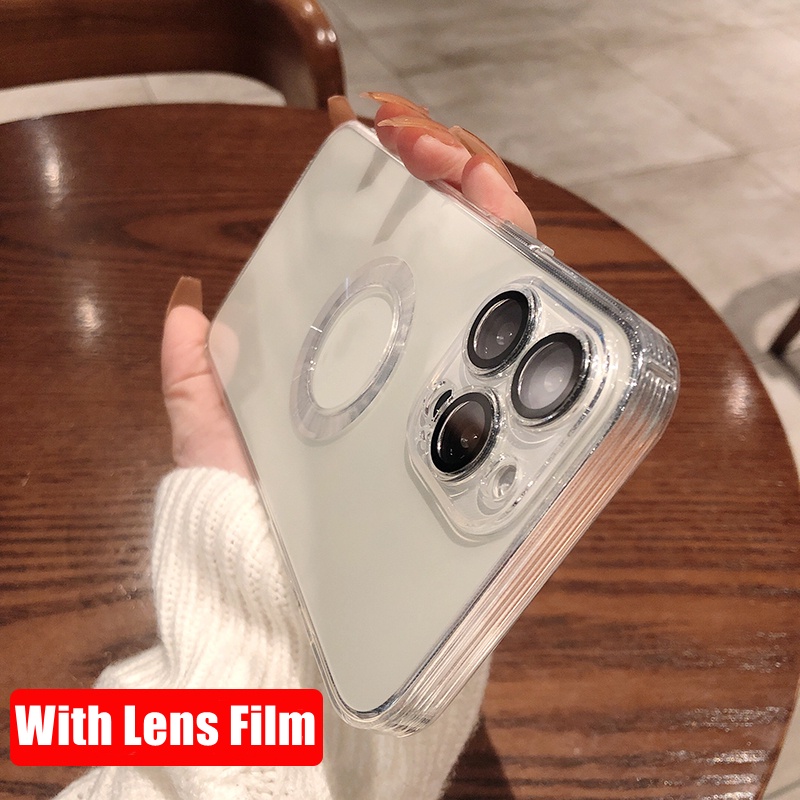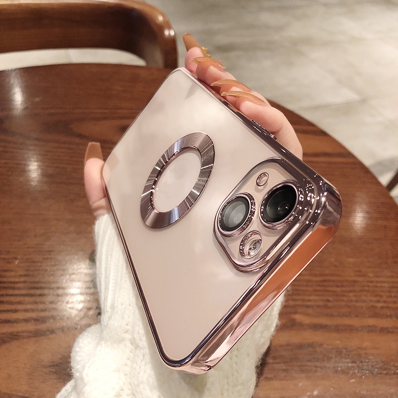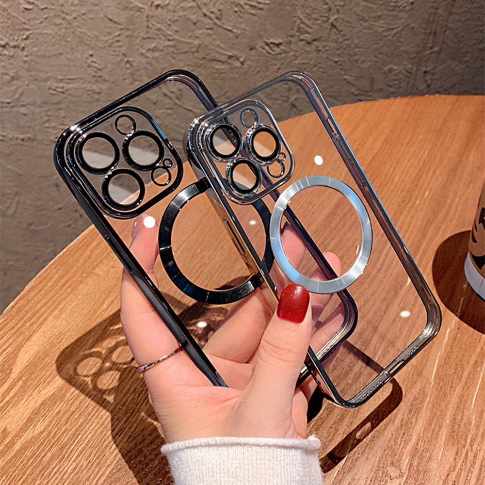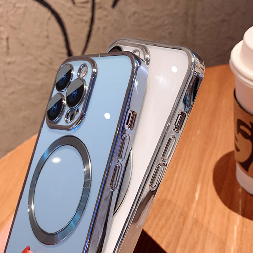 Deep Purple For iPhone 14 Luxury Plating Magnetic Phone Case For iPhone 14 13 Pro Max 12 Pro Max 14 Plus Transparent Soft Silicone Casing