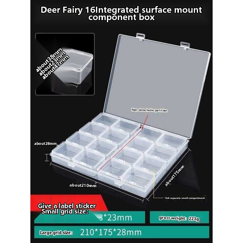 Deer Fairy Multi Parts Transparent Plastic Electronic Component Storage Box Small Screw Grid
