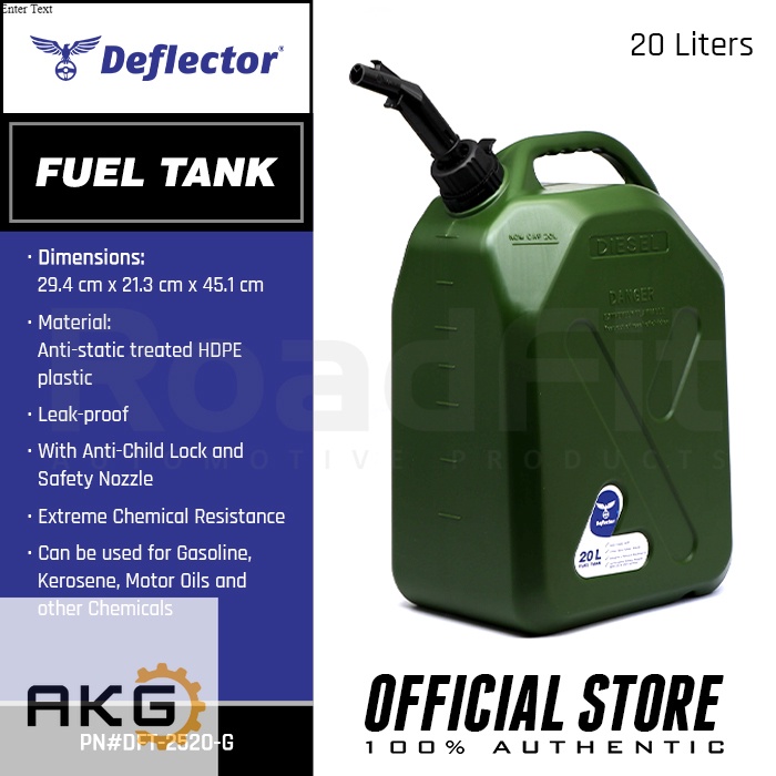 Deflector Fuel Tank for Gasoline, Diesel with Safety Nozzle (Green) Car and Motorcycle, Generator