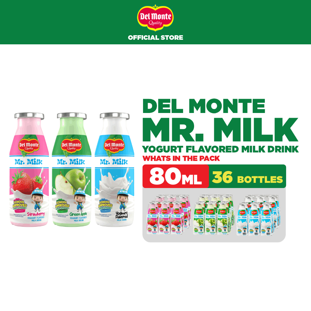 Del Monte Mr. Milk Assorted Flavors Bundle 80ml (Green Apple, Plain & Strawberry) – 36 items