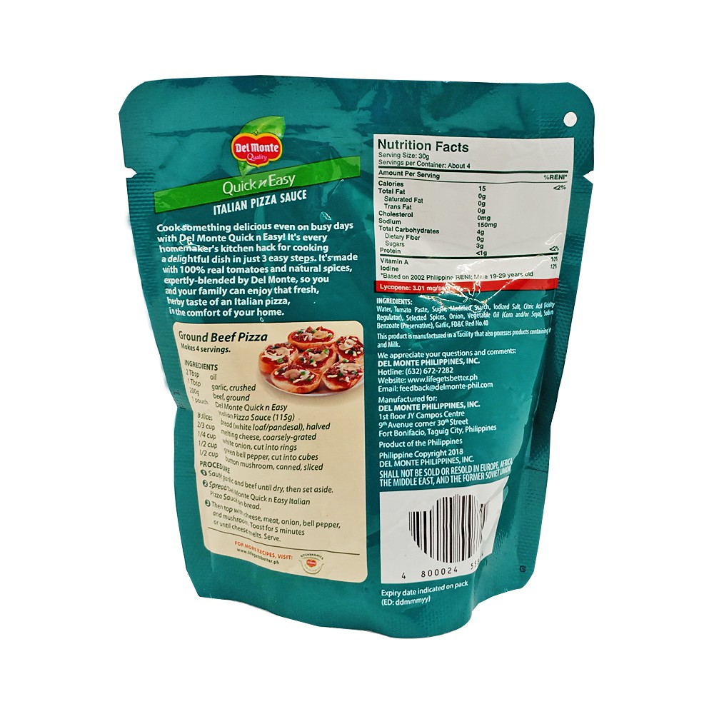 Del Monte Quick n Easy Italian Pizza Sauce / Groceries
