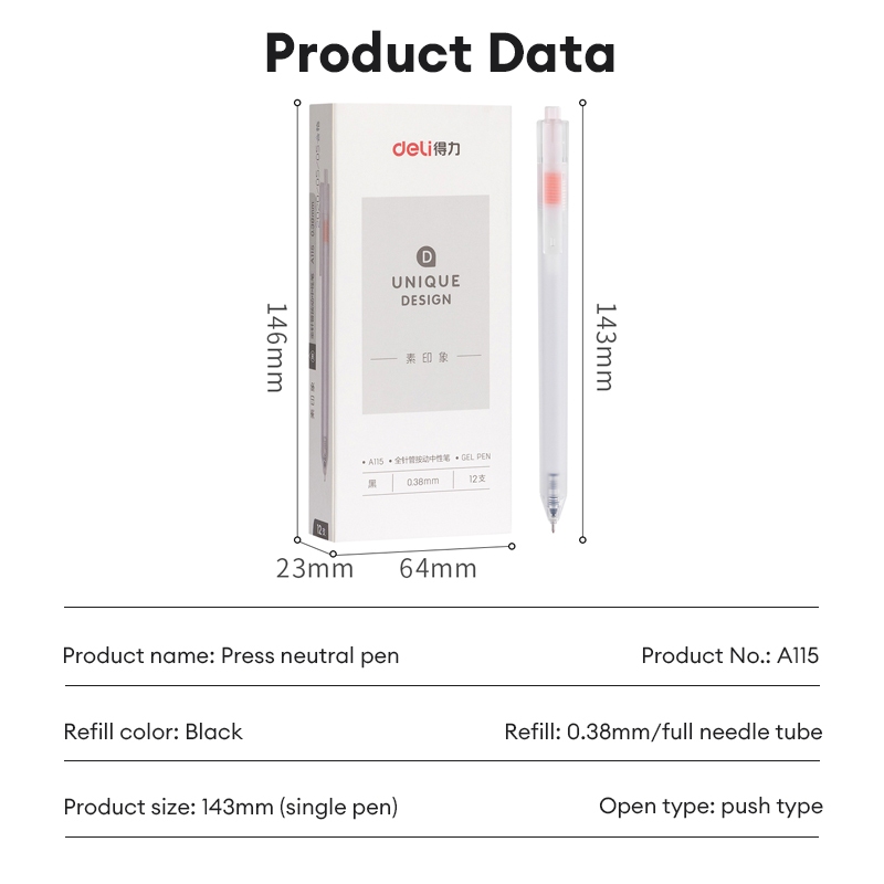 Deli 0.35mm Press Gel Pen Quick-Drying Writing Ballpen Pen For Text School Supplies 1pc