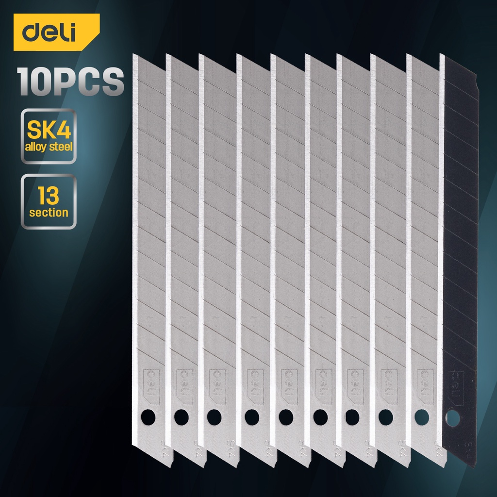 Deli 10Pcs Cutter Blade Refill Set (20x100mm) Carbon Steel Replacement Snap Off Blade EDL-DP/DL-DP