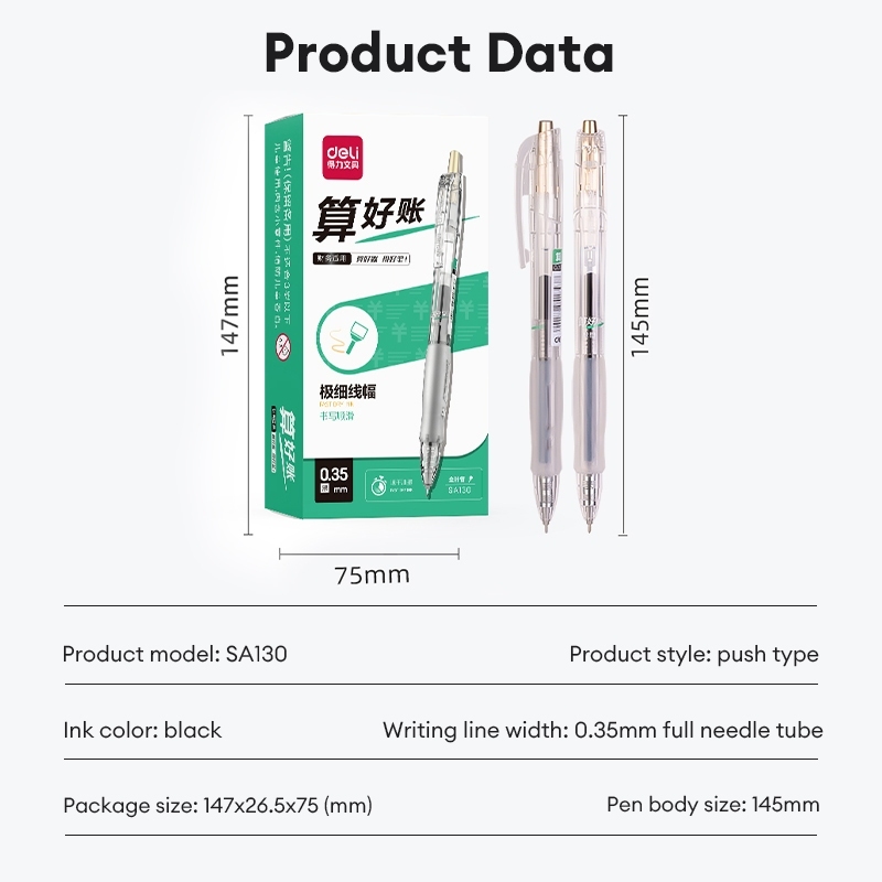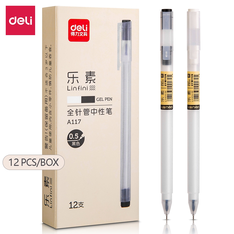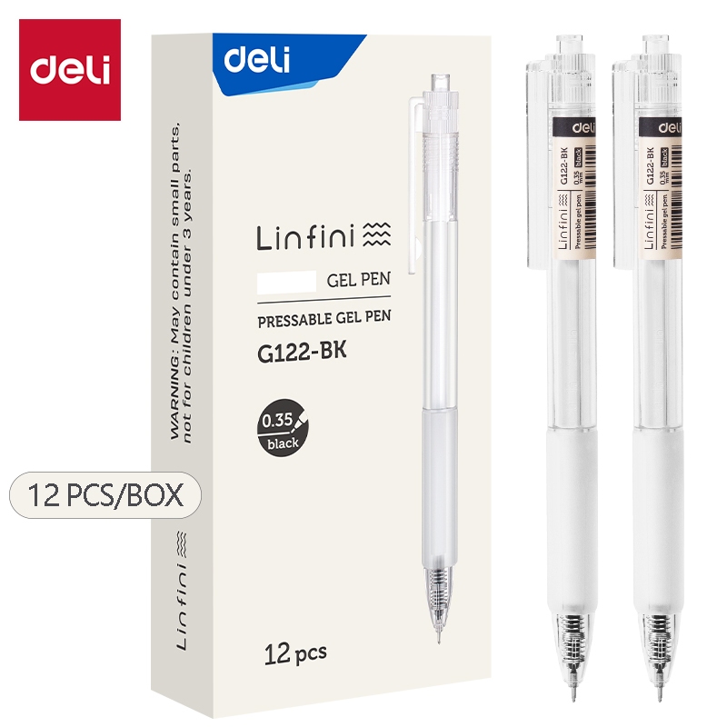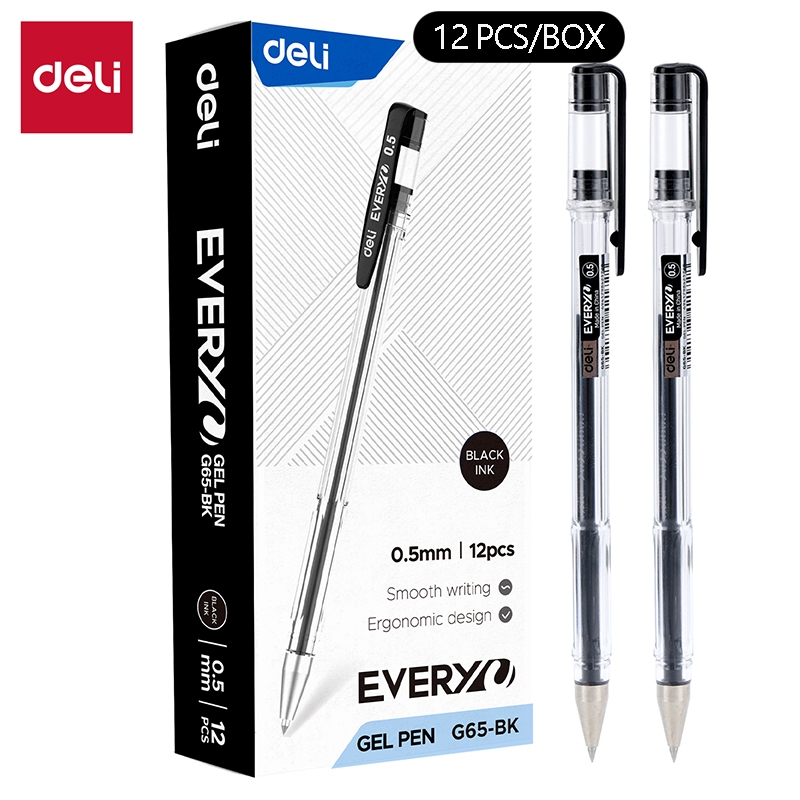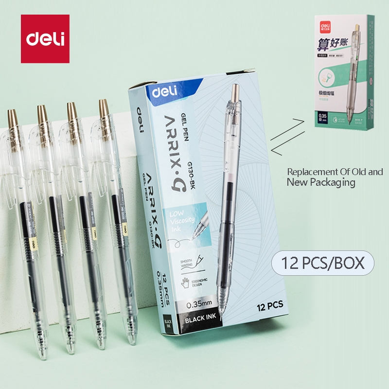 Deli 12Pcs ballPen 0.35mm Mini Tip Black ink Quick-Drying Student Writing Gel Pen SA130 A122