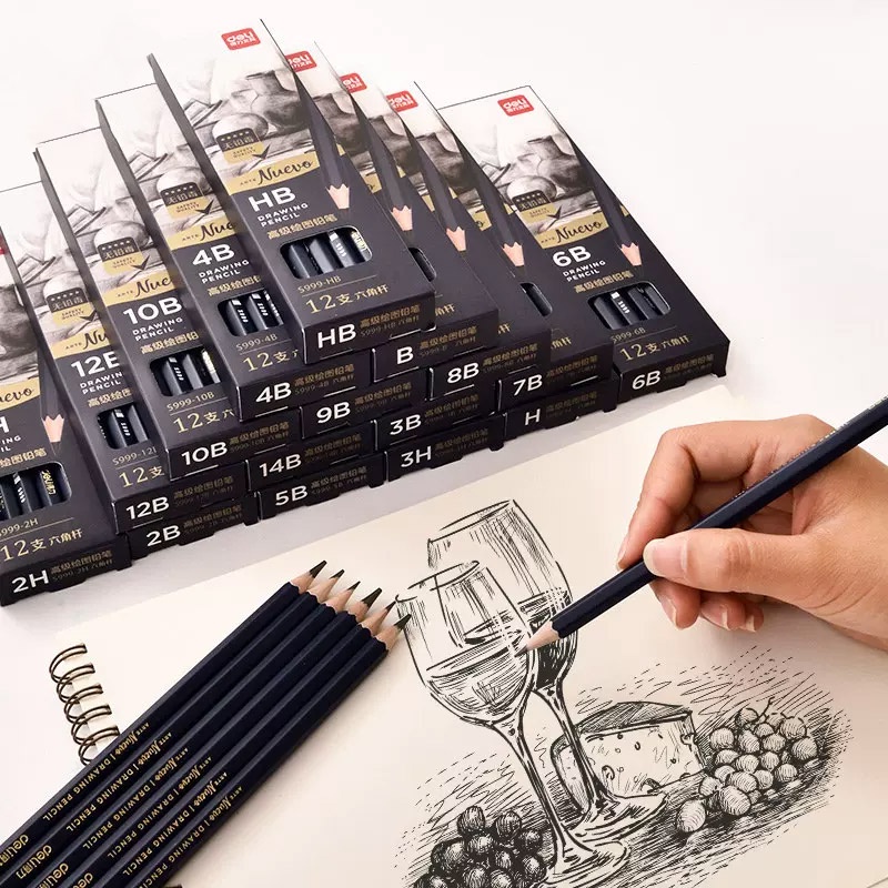 Deli 12pcs/box Sketching Pencil Set B 3B 5B 7B 9B 10B 12B 14B Drawing Pencil Graphite Sketch Pencil S999