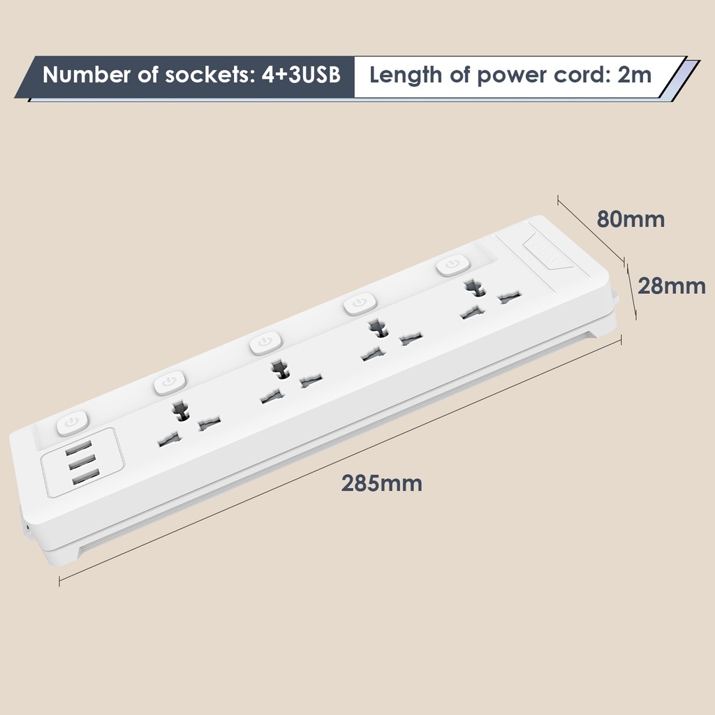 Deli 2/3/4 Groups Universal Hole Extension Cord Socket with 3 USB 2 Meters Power Cord