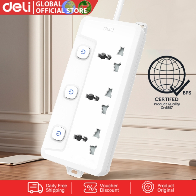 Deli 2/3/5M Universal Power Strip 3 Groups Electric Sockets Power Extensions ET791
