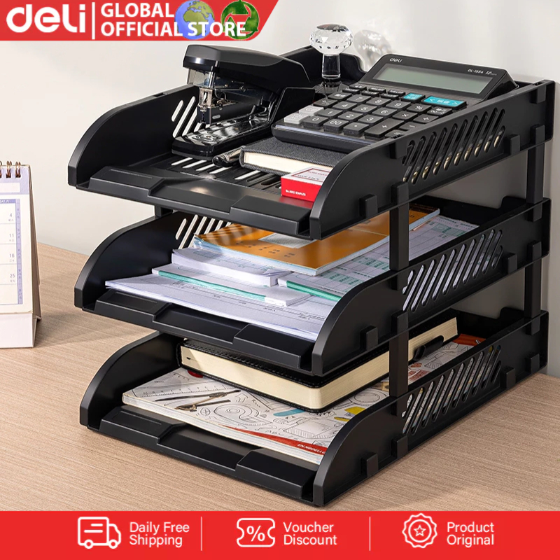 Deli 2-3 Layer A4 Paper File Holder Storage Box Office Stationery Organizer E9212 E9213