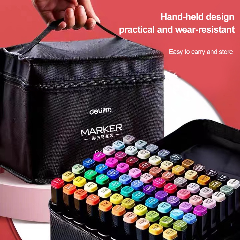 Deli 30/40/60/80Colors Alcohol Marker Pen Double-Head Markers Pen Set Safe and Non-Toxic E70806