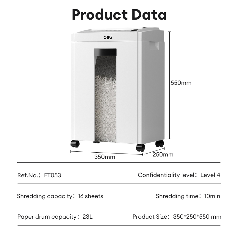 Deli 30L Paper Shredder Automatic Shredding Machine 16 Sheet Capacity