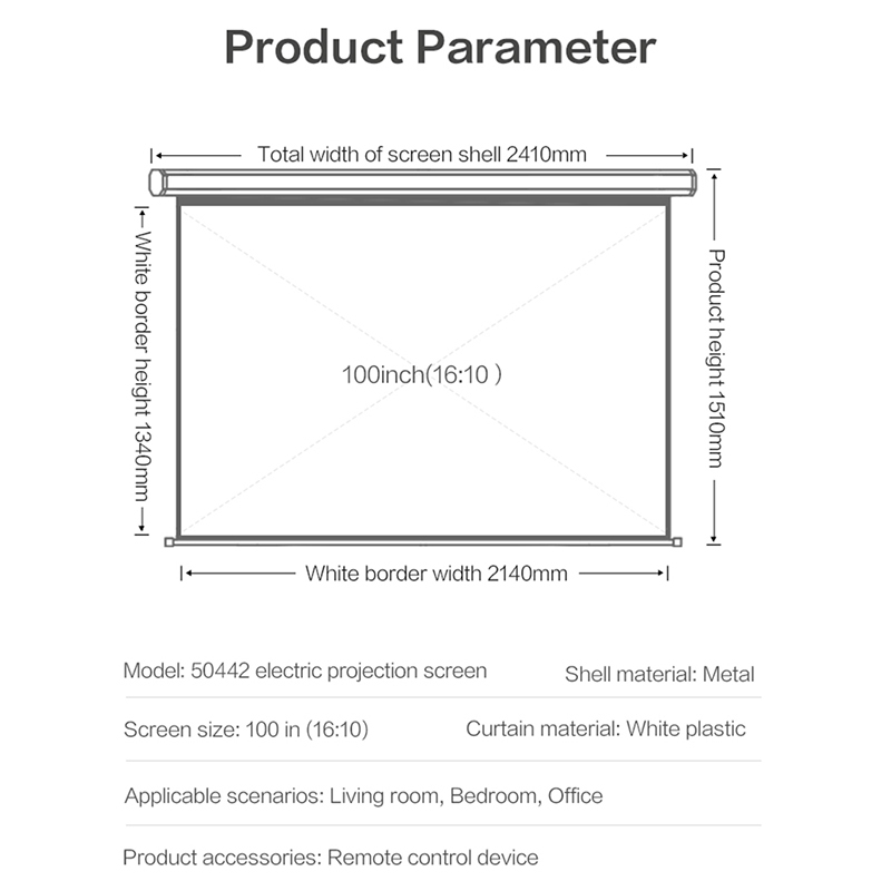 Deli 4K Projector Screen Electric Remote Control 16:10 Screen 100 Inch 50442