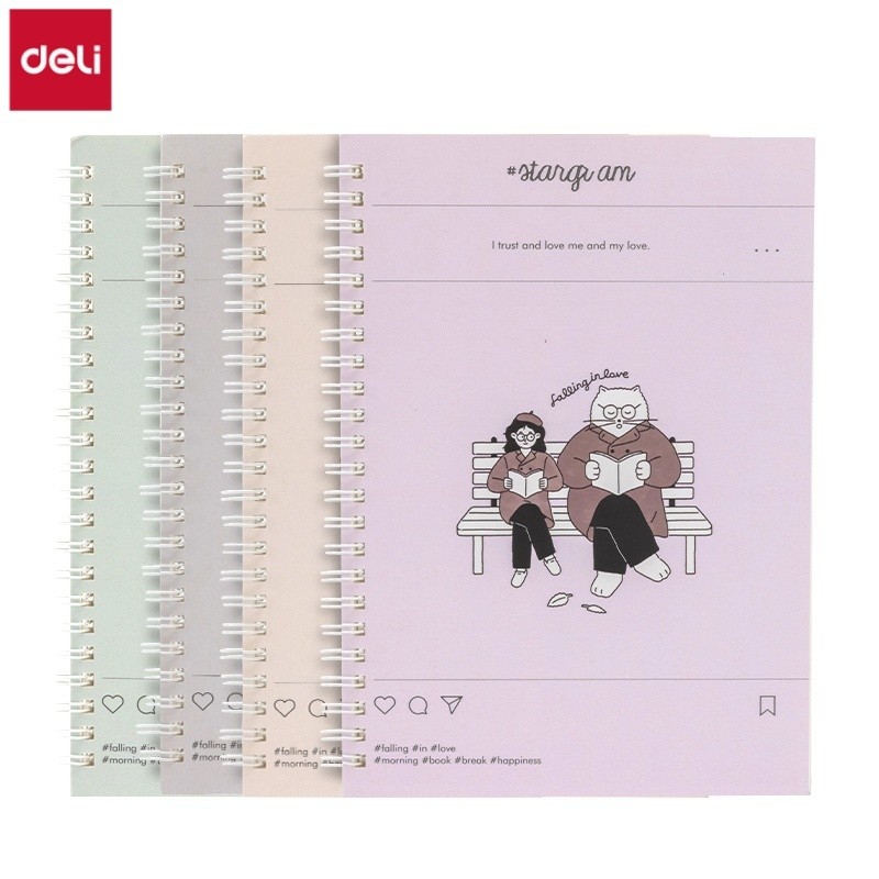 Deli 5PCS Thick A5 Spiral Notebook 60 Sheets Student Binder Notebook Line Hardbound Spiral Notepad