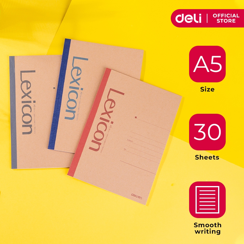 Deli Lexicon Office Soft Cover Notebook A5 30 Sheets Asstd 7635