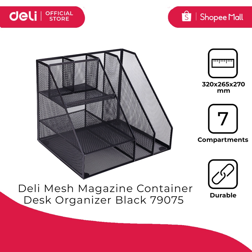 Deli 79075 Mesh Magazine Container Desk Organizer Black 1PC [7979075]